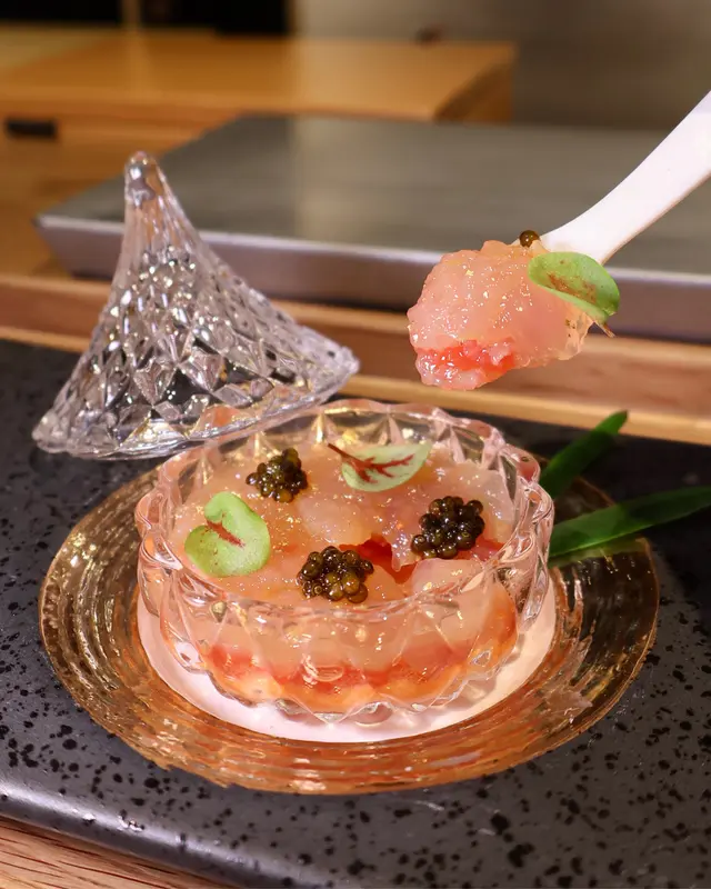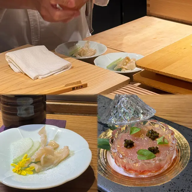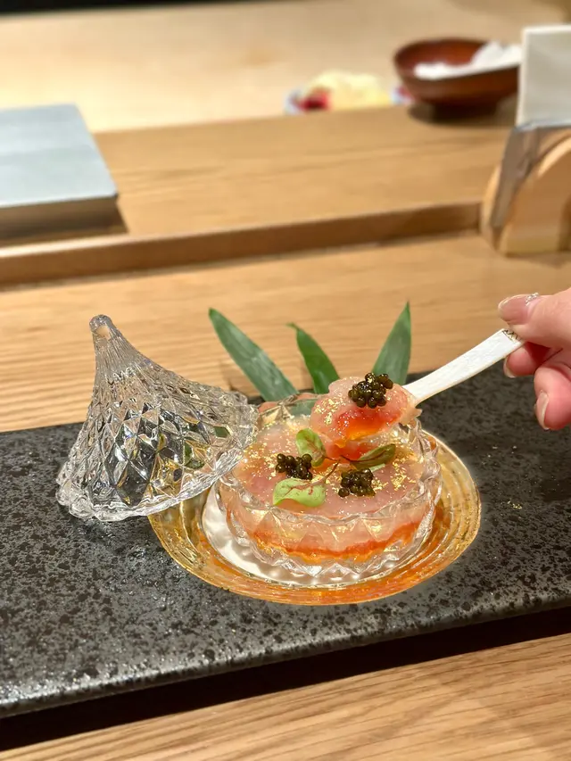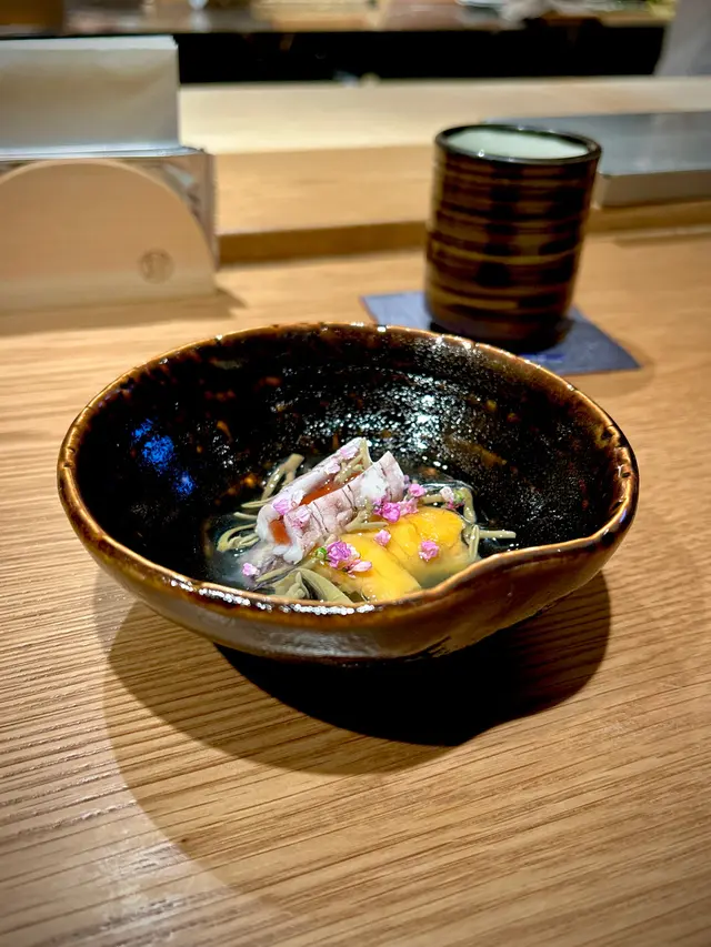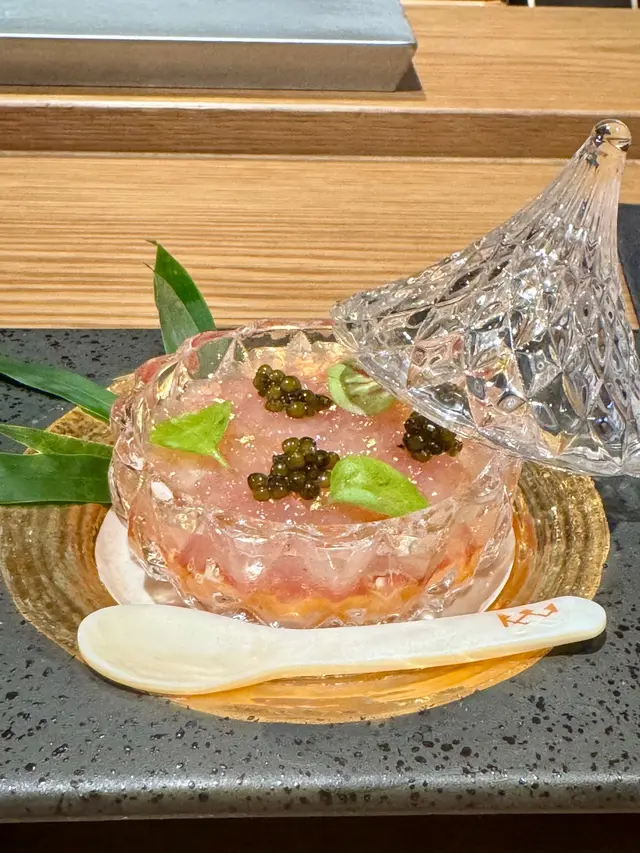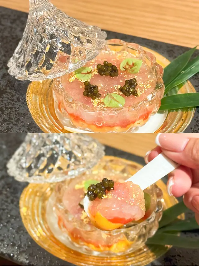 心心念念半島酒店內Omakase ‧ 釧✨ 對上一次食已經半年,係時候要趁🧡海膽宴SEA URCHIN NIGHT再食餐好啦🎊釧小編最愛釧不時轉換當季最棒食材,每次來都有新驚喜🥳 而且,每道菜都好似藝術品咁精緻,味道同口感層次爆燈,話晒位於半島酒店當然有質素保證😎 小編一於再食最豐富套餐KUSHIRO 釧,好開心🥂✨𓏸𑁍𓏸𓈒𓂃𓂃𓂃𓂃𓂃𓂃𓂃𓂃𓏸𓈒𑁍ᵂᴴᴬᵀ ᵂᴱ ᴼᴿᴰᴱᴿᴱᴰ KUSHIRO 釧 $2880/位˗ˋˏᰔˎˊ˗ 先付5款❁ 北海道紫海膽 瀨尿蝦 配蒪菜海膽同瀨尿蝦嘅鮮甜簡直係完美組合,配上清新蒪菜,入口即化,鮮味爆棚😋❁ 北海道毛蟹🦀蟹腳肉已拆好,方便又貼心❤️仲有濃郁蟹膏,點少少🍋🟩青檸汁同紫蘇葉,酸香提鮮,一啖接一啖停唔下來!❁ 紐西蘭螯蝦他他🦐螯蝦他他爽口彈牙,配上魚子醬同金箔✨ 仲有🍅蕃茄啫喱同🦞龍蝦蝦膏,口感層次超豐富,奢華感滿分🌟❁ 鏗魚用禾旱草煙燻過,帶淡淡煙燻香♨️,配酸汁同芝麻,味道清新又濃郁,超級好食👍🏻˗ˋˏᰔˎˊ˗ 一品料理❁ 鹿兒島天婦羅穴子 配冷麵天婦羅海鰻炸得酥脆,內裡嫩滑,配上甜酸梅子鳳梨冷麵,清爽開胃,夏日完美享受😎❁ 山口縣磯煮赤大鮑⭐️⭐️⭐️大廚精心製用,用上8個鐘慢蒸嘅大鮑,入口爽彈無比,鮑魚肝醬同蛋黃醬襯托鮮味,真係回味無窮☺️❁ 金鲷魚 立磷燒🐟滾油灸燒嘅魚鱗好脆,魚肉嫩滑,配米谷魚湯同柚子胡椒,味道層次分明,超驚喜🥳❁ 北海道伊勢海老🦐伊勢海老配柚子酸汁同荷蘭汁,仲有風乾魚子點綴,鮮甜濃郁,口感豐富到爆。˗ˋˏᰔˎˊ˗ 壽司8貫🍣每件壽司都係新鮮嘅極致享受,特別推介沙甸魚卷,肥美多汁,芝麻同芽蔥好夾😋 大拖羅油脂香濃,入口即化🤍❁ 伊佐木 ❁ 赤貝❁ 池魚❁ 長崎縣赤睦魚❁ 鹿兒島青海老❁ 中拖羅❁ 大拖羅❁ 海膽❁ 沙甸魚卷❁ 玉子布甸˗ˋˏᰔˎˊ˗ 吸物❁ 鹿兒島薩摩雞湯🐔滿滿甘筍、🧅洋蔥、🧄大蒜,仲有日本砵酒提味🍶,湯頭濃郁又溫暖,好治癒😌˗ˋˏᰔˎˊ˗ 甜品❁ 京都豆乳福袋💰Signature酥炸腐皮福袋,配焦糖醬油同白朱古力胚芽脆脆,豆乳奶凍香濃,多重口感超滿足😍❁ 月夏蕎茶 培茶海綿蛋糕配吉士醬同黑豆煮,茶香濃郁,甜而不膩🫖❁ 黑芝麻朱古力香濃黑芝麻同朱古力嘅完美結合,甜品控必試🍫超滿足嘅大餐,真係極力推介大家喜慶日子要嚟試下,小編都約定要再來啦🫶🏻🫶🏻 …查看更多