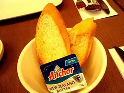, 幾片生菜和兩邊車厘茄, 混合了甜醋汁, 味道普通。 煙三文魚菠菜墨汁意粉$83: 配湯/沙律和麵包,餐包是兩片法包配牛油, 麵包拿上手暖暖的, 但食落有點硬, 似放耐左再焗熱:(。是日餐湯是有機番茄雜菜湯, 端上時真的很熱, 有不少鮮茄粒和其他雜菜, 酸酸的很開胃
