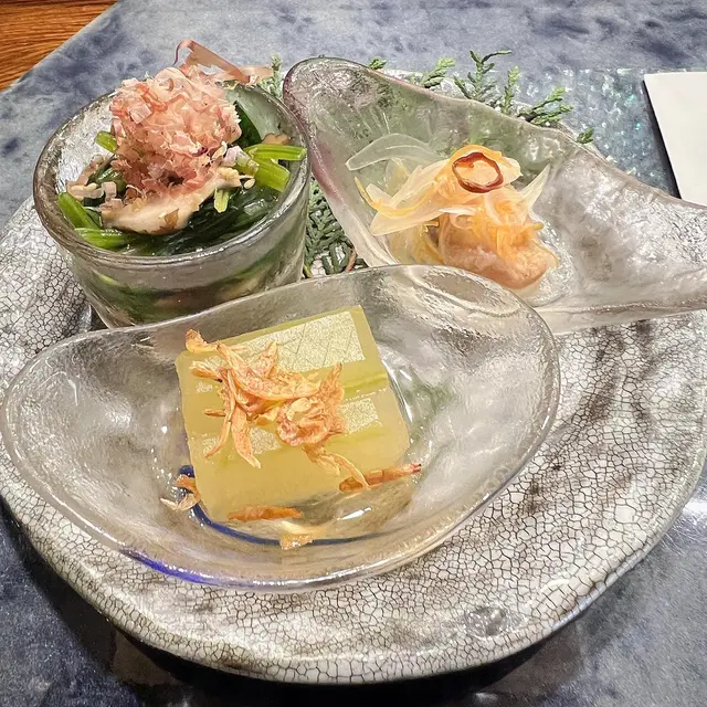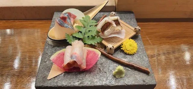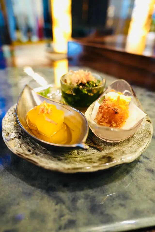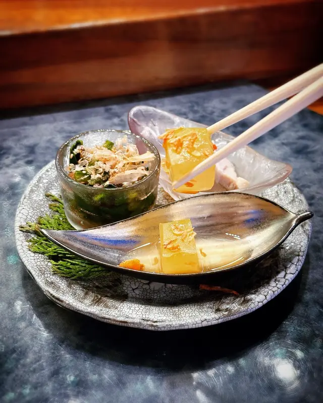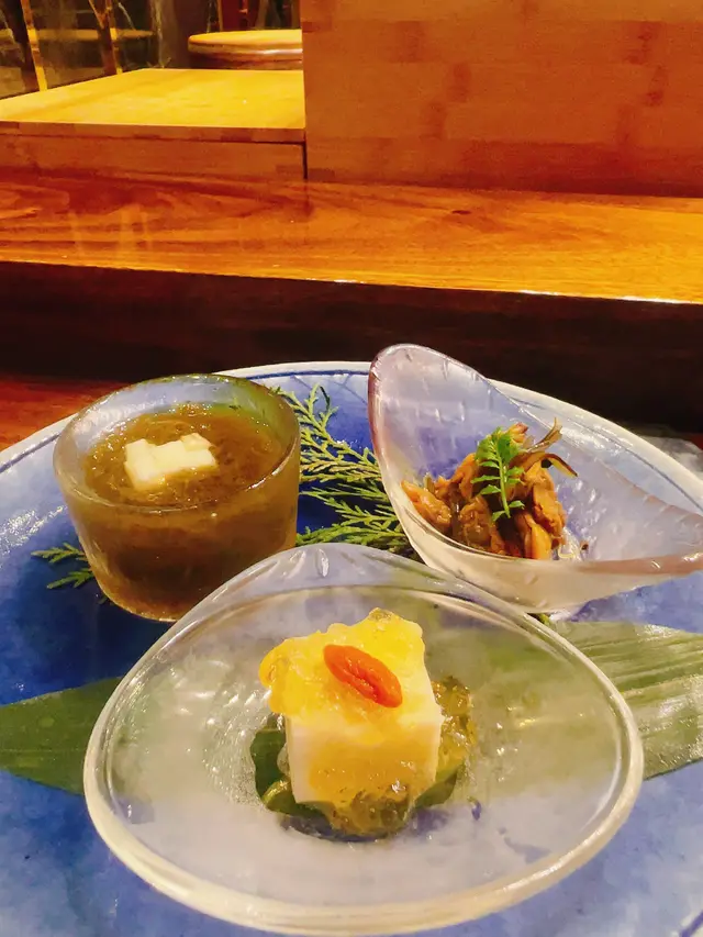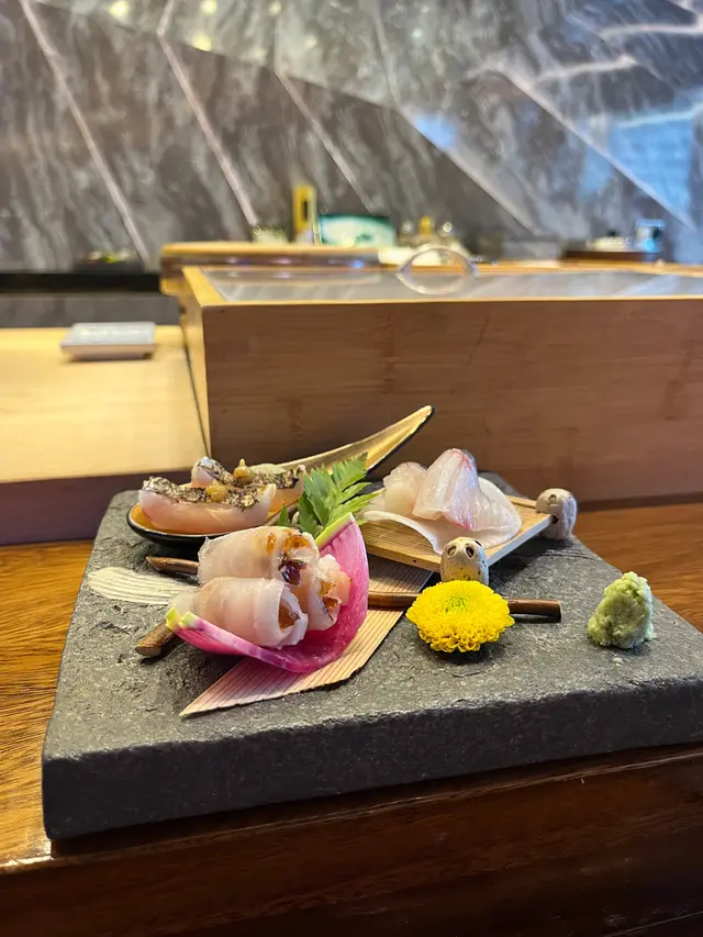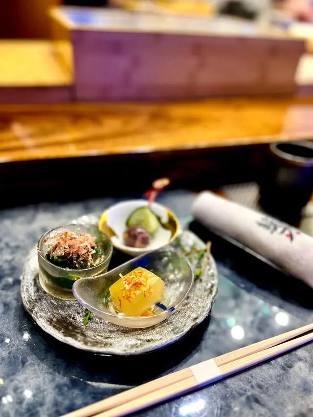 上個月初嚐人生第一次Omakase晚市Booking時間唔會太長,雖然唔係耀師傅琴自操刀,但同樣都有好好的service 分別叫左2 款餐作參考 ⎊ ⎊ ⎊ ⎊ ⎊ ⎊Sakaki $1580 ⎊ ⎊ ⎊ ⎊ ⎊ ⎊ ⎊ ⎊ ⎊ ⎊ ⎊ ⎊三品前菜烏瑪豆腐口感特別、炒牛蒡、海蜇醉雞二品料理生蠔超大隻鮮甜 3 件間白魚,中間卷薑絲,放入醬汁啫喱味道增加層次三品料理中拖、深海池魚、太都魚*Special * 鎮店名菜 /Light Fried Fatty Tuna Monaka Wasabi Mousse/輕炙燒大吞拿魚腹配wasabi泡泡 上面有黑松露醬 ,小餅乾盒子伴住要一口食完!滿足😌壽司十貫最深刻係細條池魚,三星醬油漬味道,帶辣爽口除左常見既北極貝、金目鯛、赤海膽、春子鯛魚食左2 件吞拿魚熱食壽司食到中間,會有2 道熱食一碗熱魚滑湯和燒吞拿魚絞甜品係芝士雪糕,配上哈密瓜 ⎊ ⎊ ⎊ ⎊ ⎊ ⎊Kusunoki $980 ⎊ ⎊ ⎊ ⎊ ⎊ ⎊ ⎊ ⎊ ⎊性價比好高,比較少刺身料理,但含有15 貫壽司好飽肚,而且上面Set 食到魚類都可以食到。唯一可惜沒有鎮店吞拿魚盒子😑 …查看更多