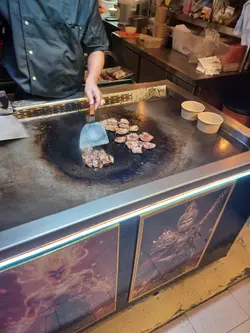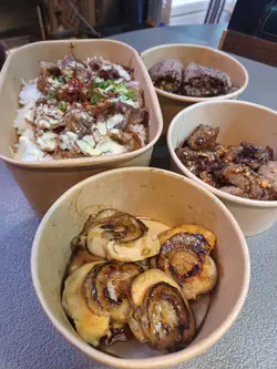 鉄皇子小賣所,食佢嘅鐵板料理係重要,但更加重要嘅係,可以現場面對面令距離欣賞前xxxx酒店主廚Ken哥嘅鐵板燒表演。小賣所設於太安樓,所以佢嘅鐵板料理價格非常親民,一個非常飽肚嘅鐵板牛丼都係60蚊冇找但價格親民嘅同時可以為你提供非一般嘅食材品質。今次我哋叫咗四款鐵板美食首先推介嘅係鐵板一口和牛粒,和牛粒肥瘦適中,唔會話一啖咬落去成粒都係肥膏和牛粒用酒燒方式處理過,粒粒都煎到外皮脆脆地,但係咬入去又充滿牛汁嘅軟腍,而且以依個價錢嚟講份量仲一啲都唔少。之後係牛肉薄燒,牛肉片經過鐵板燒香咗將裏面嘅油脂香迫晒出嚟再加上牛肉片包住大量嘅蔥同埋蒜,一啖咬落去,牛油香蒜香蔥香混合晒一齊,嗰種味道直谷上腦,正!鐵板羊架又係一樣用酒燒方式處理過嘅美食,羊架本身睇得出肥瘦均勻,而且唔會太騷再加上酒燒處理過,基本上色香味俱全,而且咬落去一啲都唔嚡口。 然後就係性價比最高嘅鐵板牛肉丼,你冇睇錯一個用鐵板處理嘅牛肉丼飯竟然只係賣$58我加多個炒滑蛋都係加多$15,過份量已經多到一個成年人都差啲食唔晒。牛肉片嘅雪花分明。絕對唔係拎啲平價貨嚟整,燒香咗嘅牛肉再加埋蛋香十足嘅炒滑蛋,再加上Ken哥秘製醬料,成個丼飯嘅感覺根本就係高級日本餐廳嘅製成品,再加上仲可以現場睇到Ken哥嘅鐵板表演,諗唔到咩原因唔去試。…查看更多