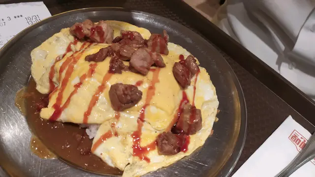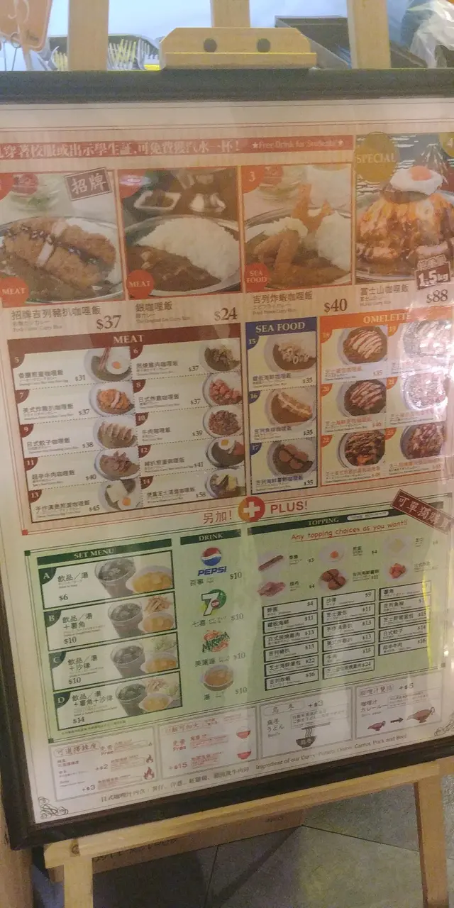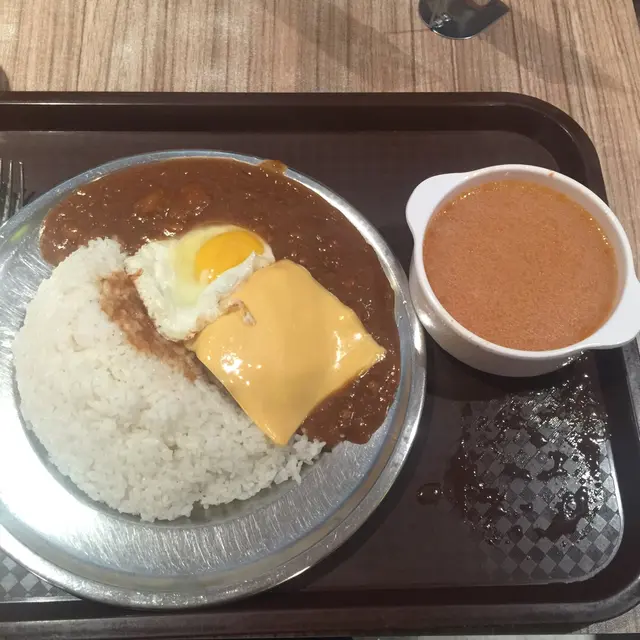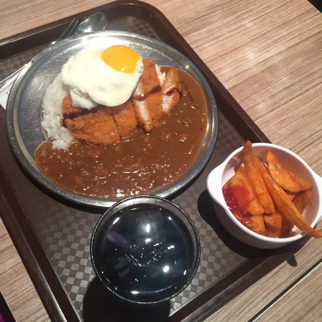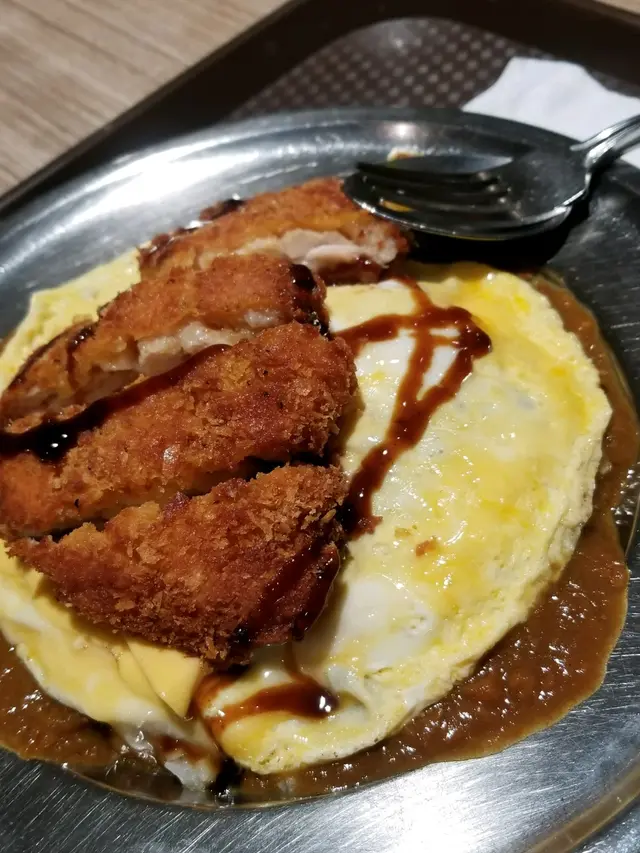 哇 好大一碟這是二人餐嗎😅幸好在下沒有貪心加料咖哩裡面有肉碎這可大大增加飽肚感只是大本身也能很飽了吧?先咬一口炸豬扒炸物必須襯熱但不太合在下口味呢覺得筋還滿多的吃它需要點在下沒有的牙力相對之下軟軟的漢堡扒就更合在下口味腿腿就有點咸不過用來送飯可真好而在下最喜歡的其實是放在桌面的“自便”蘿蔔漬配上咖哩汁有提升味道的效果也能使人更開胃飯飯中間有個洞把半熟蛋弄破果真有富士山爆發(?)的感覺名字改得好啊(誤?)整體而言正正常常切記別看高自己的食量這個富士山在下只KO了2/3左右有點浪費食物啊然後想說環境很好好在沒有幾個人對在下而言感覺更自在不怕吃飯的沒儀態嚇到隔離座的😅飽..飯氣攻心..…查看更多