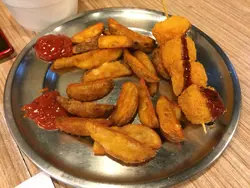 是旦一餐就黎銀咖哩點吉列海鮮薯餅咖哩飯薯餅食唔到有咩海鮮,唔易碎唔太咸,勝在夠熱,天寒地凍一野咬落去超開心。咖哩汁有d太咸,香味唔夠,好彩有好多蘿蔔粒,有返少少甜味同口感。 再點多個薯角同薯波三兄弟新鮮炸好夠熱好香口,平價之選Read More