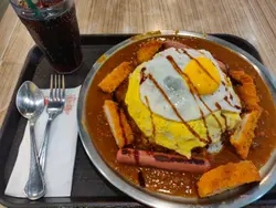 係記憶當中,粉嶺花都呢間銀咖哩都開左好多年啦!係咁多年入面,我好似隱隱約約記得自己有食過兩三次,今日咁岩放假,就自己一個諗住再食下,意圖尋回記憶當中嘅味道。我心諗反正唔會成日食,就點左個最貴嘅special咖哩飯加杯可樂,$88一個咖哩飯+$6野飲(跟餐要+6蚊真係好貴) 量係相當足料,好多飯,圍住一大堆咖哩汁,咖哩汁上係一塊切開左嘅吉列豬排切件散上,另外有兩條香腸,其中一條明顯煎耐左外皮少少有黑色痕,不過整體唔影響口感味道,另外兩塊蛋中間有一塊唔大唔細嘅厚厚地嘅漢堡肉(唔記得影相🙈) ,如果以量黎講嘅話,呢個飯嘅價錢算係咁,唔算太貴亦都唔算平,相對於其他餐廳內嘅選擇就異常地高😂不過,以味道黎講,我覺得完全唔值,我唔知係我口味唔同左改變左定係咩原因。。。我覺得之前食銀咖哩,我係覺得味道唔錯嘅,但係今日我再食,我覺得好疑惑,點解我會完全接受唔到銀咖哩嘅咖哩味道。。。我覺得完全唔係咖哩,當然只係我個人口味問題啦!咁但係食咖哩最重要就係咖哩汁,精華所在,如果覺得咖哩汁唔ok,食龍肉都無味,所以身為食肉獸嘅我,最後食哂啲肉,食左大約3分1嘅飯,我已經食唔落啦!實在抱歉,做左浪費糧食之人🙈🙈Read More