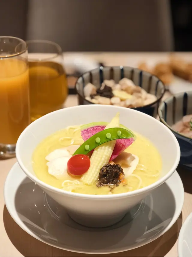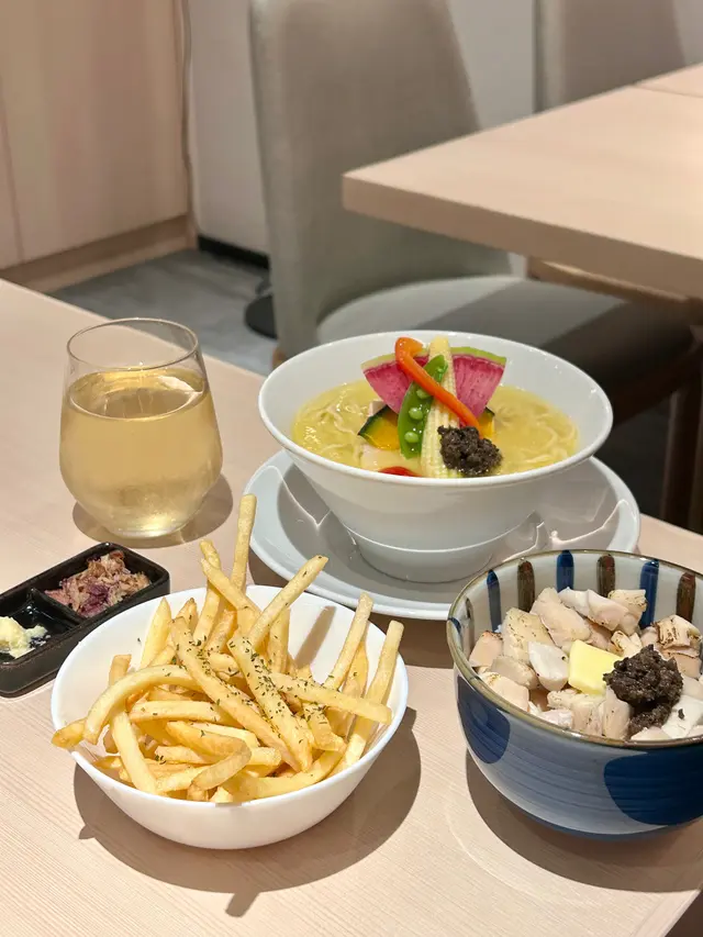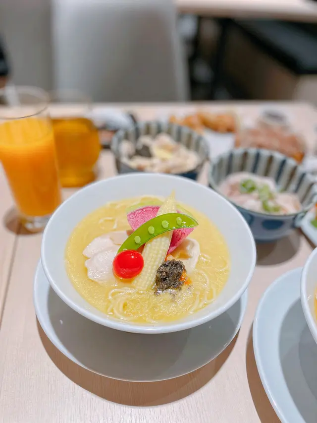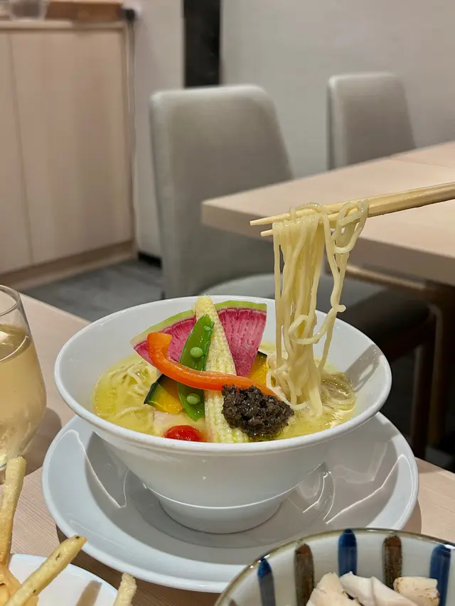 雞白湯特製拉麵湯底:雞湯味濃郁。相對於坊間有d 比較奶味嘅湯底,呢個嘅雞味相對重一啲,似係傳統雞湯但呈現杰身濃稠嘅質地。另外佢多咗一層油喺面,令到味道再濃郁一點,如果怕油嘅朋友就可能有啲介意。麵條:正常日本生麵嘅味道,份量頗多。食到最後都冇咩鹼水味係個湯到。材料:特製套餐比起普通餐多左一碟配菜。有兩片雞肉,一件比較嫩滑,一件正常水準。唔鞋口但又未去到好嫩滑好驚喜嘅地步。🤔松露雞白湯醬油拉麵湯底 : 松露味係非常充足,濃郁到完全遮蓋左雞白湯嗰種鮮甜嘅雞味,淨係飲到好似忌廉黑松露汁咁樣。我原本以為係雞湯味為主,再帶少少松露增添多一點層次,但係而家松露嘅味道完全over power咗。本身個味道唔差,但就冇雞湯味。除非一心只係想食到松露湯底味,否則唔推介。🤔雞白湯抹茶Soba湯底 : 第一次見有抹茶味嘅湯底,好奇心起點來試下。其實味道唔伏嘅,帶有淡淡嘅抹茶甘香,居然成件事係夾到。不過如同上述,抹茶嘅甘香味遮蓋左雞湯果種鮮甜味。自己試一次就好,比較上來都係原味嘅雞白湯最鮮甜最推介。餃子:正常日式餃子嘅味道。…查看更多