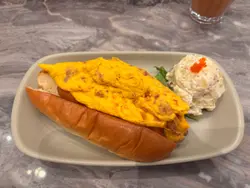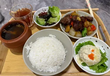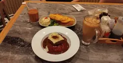 睇埋個logo先知原來係聲效果種銀芽!有創意~服務我同巴士迷朋友兩個入座,職員安排我地坐四人位,好闊落,之後有人需要搭檯,職員都會同你講聲。呢度唔駛收加一,for打工仔,都幾好。檯上面有紙巾提供,水就自己裝。黑椒汁芝士漢堡扒飯$54十分,賣相好吸引,上面有塊芝士,感覺似日式。芝士上面唔係粉,好似粉,其實係入面廚房用細火槍熱過,用高溫令佢溶化,低溫係做唔到嘅。塊漢堡扒有肉味,真係安格斯,唔係話好假嘅。個汁非常香濃,份量剛好,飯量足夠。凍奶茶 跟餐加$3凍港式奶茶,好香奶味,又有好香茶味,一流!咸牛肉炒蛋熱狗配德國薯仔 $45十分,yes,i really sure,個包有烘過,係脆嘅,有煎過,唔係話炸過,入面有芝士汁。個蛋幾好食,係炒過黎,有咸牛肉。不過如果上面可以加啲汁或醬就更perfect match。德國薯仔就有一球,第一次見茶餐應有提供,如果份量可以大啲就,唔介意整細個包。熱奶茶少奶 跟餐唔駛加錢用玻璃杯裝,冇乜特別。環境非常大,好有relax感覺,牆上有張大圖叫人relax。音樂都ok。座位幾大,唔係真皮,係絨,清潔就可能麻煩啲。聽到附近有人話唔好味,我地就覺得OK,係新式茶餐廳,口味年輕啲。難得中環有個平民飯堂。…查看更多