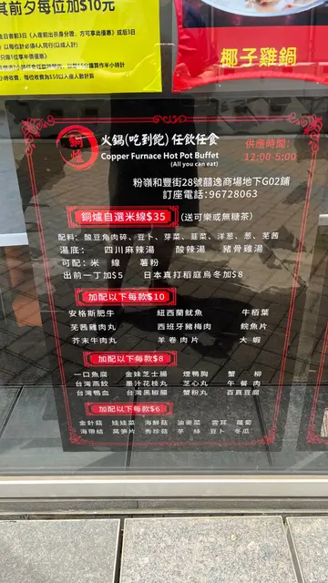 昨晚都差不多9:15pm和兩個朋友,經過囍逸樓下,遠處望到呢條橫街門口有個坐地白色底黑色字寫(放題)招牌都幾搶眼,好似人在日本橫濱感覺,咁我們就入去試下呢間裝修得好有個人風格嘅(銅爐火鍋放題)椰子雞煲超好味(個人感覺)一般放題有嘅,佢都有,特別D嘅就係台灣火鍋配料選擇多😋,炸物勁好味😋,(大蝦)都係任食真係少見,呢次真係返本😂🤣冷靜,4,5款啤酒任飲🍻嘩!真係任飲,今晚過癮囉!🤪😇安格斯肥牛都係任食每人唔使二百紋,對比山長水遠出九龍食火鍋放題,近近哋好過啦😁真心雖然係平價嘢,講(食物質素)超值(服務)🕺👍(環境)👍(衛生)👍整體超值,百分百再來,用個心去做嘅小店,加油🎃🎄…查看更多