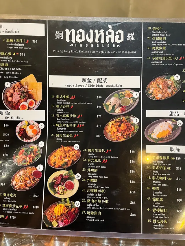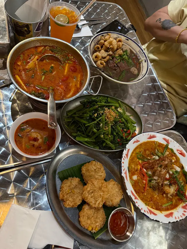位於九龍城的泰國菜餐廳。突然又想食泰菜,而說起泰國菜,好多人第一時間應該都會秒聯想起九龍城吧。不過九龍城的選擇實在太多,一時之間不知如何選擇點揀,最簡單又最醒目的方法,就是揀最新開的那間吧!.餐廳空間其實不算大,桌椅擺得密密麻麻,牆上掛滿舊舊的海報;但近年新開的泰國餐廳似乎都是這種裝潢,感覺就是要大家在進餐的同時,可以沉浸式代入,猶如身在泰國大排檔吧。⋆_____ᴛᴏᴛᴀʟ ᴏʀᴅᴇʀ______⋆✿ 泰式生蝦 $98新鮮爽口的生蝦,加上泰式辣醬,蝦肉彈牙並有刺激甜辣口感,非常開胃。.✿ 和牛船面 $98湯底濃郁香醇,牛油香及香料味突出;以和牛為主角,搭配金邊粉及豐富的配料,如炸豬皮、牛丸、和牛片等等,喜歡濃湯的必點。.✿ 醉貓炒河 (和牛) $108淡淡的酒香與辣椒炒香,口感帶辣且香氣十足。河粉煙韌不黏,入口滑順且有微微焦香,和牛油脂滲入每一根河粉,但不太能吃辣的也許不太能吃得到。.✿ 燒和牛 $188選用優質和牛,外層微焦內裡粉嫩,入口保留肉汁,肥瘦分明;也可蘸點泰式辣醬,別有另一番風味。.✿ 芒果糯米飯 $68泰式甜品必點之選。糯米飯軟糯香甜,芒果新鮮鮮甜,完全不酸。淋上椰漿後層次分明,果然是泰式餐廳的才是最好食。.✿ 花生雪糕 $48花生醬雪糕有濃厚花生香氣,甜度適中,質感細滑;而且配料豐富,有焦糖香蕉,燒粟米,焦糖脆餅及糯米,口感很豐富,雪糕應該是整晚的mvp呢。.✿ ᴅʀɪɴᴋꜱ: 泰式奶茶 $38┆椰汁沙冰 $48…查看更多