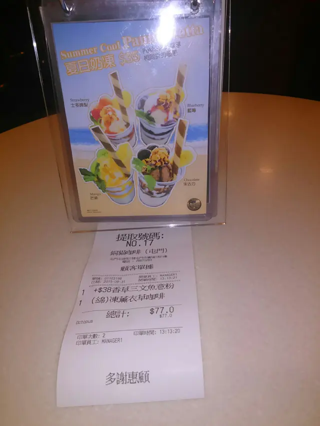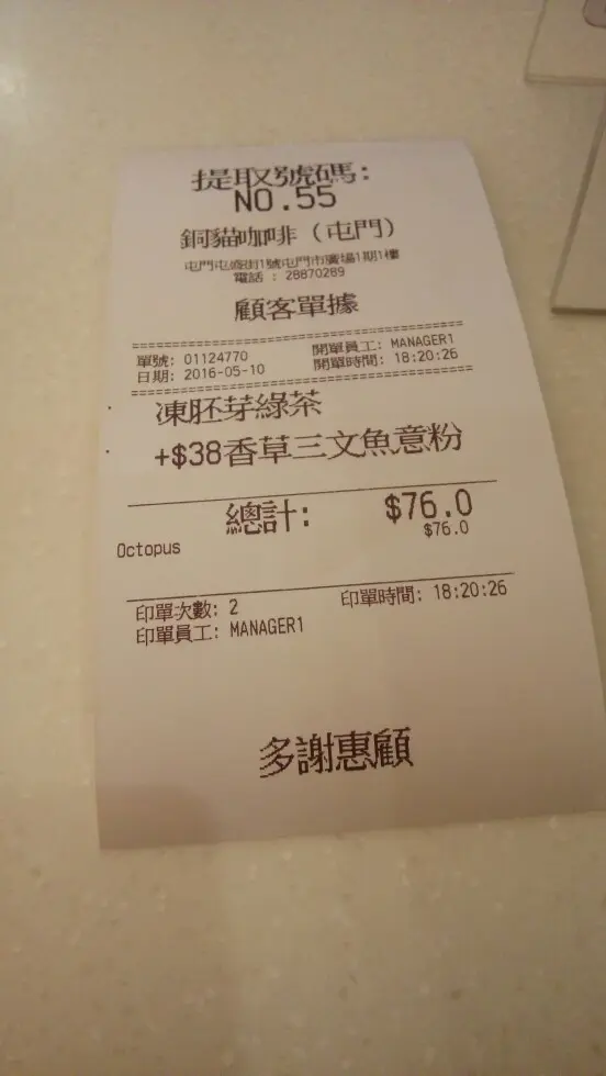 又是屯門,又是要等朋友的時間。選了銅猫咖啡,因為之前飲過他們的咖啡著是不俗。他們的咖啡裝璜是幾好的,也放了一些咖啡豆和餐具售賣。在場裡煮咖啡也有一些虹吸壼、蒸餾壼等等先來的是哥倫比亞極品,齋啡飲法,沒有加糖和奶。這種咖啡豆頗有果香味,酸度不算很厚,甜味反而喝不出來。與他們寫出來的評價有少少許出入,可能是貨源和水的溫度問題。之後來的是韓式炸雞脆包。炸雞味道不錯,加個辣醬卻實有啲韓風。而脆包真的很脆,散出來的包碎和麵粉超多。其實整體上這個包的味道不是差的。但因為雞肉本身是一粒粒的,基本上只是一個好睇唔好食的脆包。"唔好食"不是指味道,而是不能好像一個食那麼容易食。結果還是自己咬一口包,用叉篤一塊雞。可能轉成雞扒會好一點吧?笑面是給咖啡的。可能在這間咖啡店還是只喝咖啡就好。…查看更多