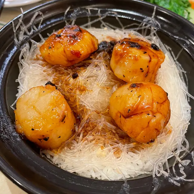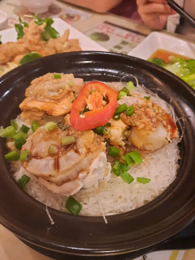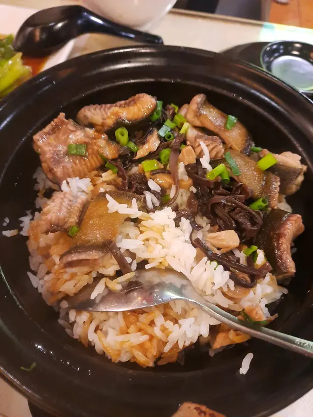 扇貝煲仔飯,黃鱔煲仔飯,椒鹽鮮魷,蔥油雞