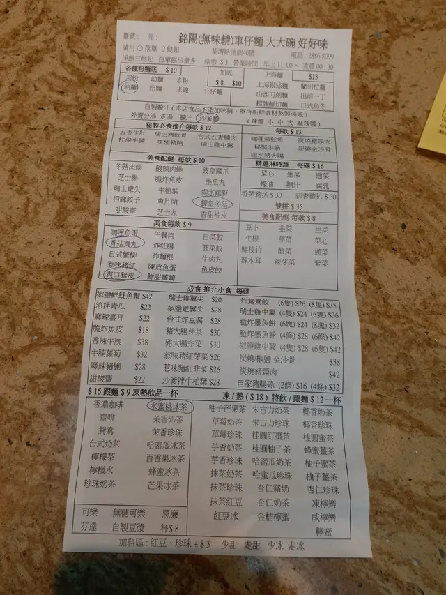 繼續學人寫食評😎😎尋晚無意中周老公發現左lee間車仔麵,心思思入去食咗,初初都擔心唔好食,因為本身都係想食好西!哈哈,一入去到就有張卡位,開心ing!坐低望望張車仔餸子,都算幾多選擇😛😛!今次我叫左麻辣金錢肚、魚皮餃、醉辣肉碎、瑞士雞翼尖、腩汁中辣米線。我老公就叫蘿白、木耳餃同牛筋,腩汁火線!想講講既係每個餸都好好味!好特別!先講下麻辣牛肚唔係得個辣味,係食到牛肚既香味,而且羶味架😋😋,另外居然食到魚皮餃既鮮味🥰🥰!瑞士雞翼尖嘅瑞士汁都相當之濃郁,正正正啦最後講吓木耳餃,店主係寫住必食,木耳餃🥟🥟本身爽爽地皮都算薄,好有口感,最後我哋仲叫咗個小食添啊,就係椒鹽金沙骨,賣相同味道都唔錯啊,脆脆嘅金沙骨帶點肉汁嘅香味,雖然鹹咗少少但送落個面度都相當唔錯,值得一去!本公主下次會再去😚😚🥰🥰#食評 #食好西系列 #車仔麵…查看更多