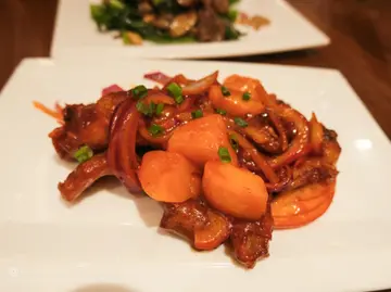 鋿晶館上水XO醬龍躉炒腸粉呢道XO醬龍躉炒腸粉都幾有亮點。腸粉滑嫩,搭配特製XO醬,味道濃郁,龍躉魚片份量多大塊而且又鮮美,令人一啖接一啖濃湯浸時蔬呢個係健康的選擇,唔油膩,清爽黑白墨丸湯米粉本來諗隻會冇乜特別,但黑白墨丸口感彈牙,湯鮮甜,用左拉麵底。不過如果你中意食辣的話,可以考慮加一些辣椒,會更提鮮味。抹茶奇異果抹茶奇異果呢個搭配真係好有創意,抹茶小小苦香同奇異果既酸甜好吸引。上面加左隻奇異光冰色彩鮮豔,又帶清新口感,特別椰汁紅豆冰椰汁香濃,紅豆綿密,甜度岩岩好。冰涼的口感如果係炎熱的天氣食係會感到清爽。…查看更多