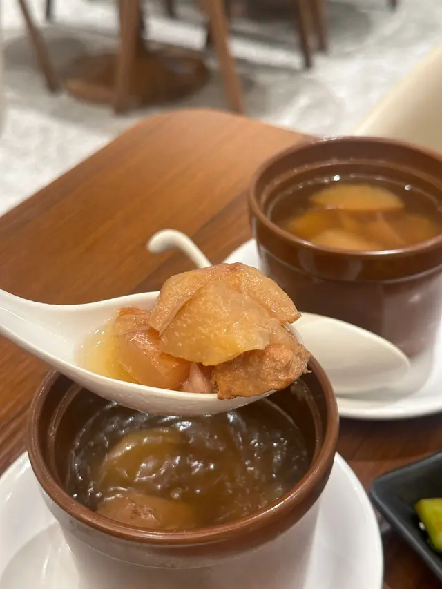鋿晶館上水XO醬龍躉炒腸粉呢道XO醬龍躉炒腸粉都幾有亮點。腸粉滑嫩,搭配特製XO醬,味道濃郁,龍躉魚片份量多大塊而且又鮮美,令人一啖接一啖濃湯浸時蔬呢個係健康的選擇,唔油膩,清爽黑白墨丸湯米粉本來諗隻會冇乜特別,但黑白墨丸口感彈牙,湯鮮甜,用左拉麵底。不過如果你中意食辣的話,可以考慮加一些辣椒,會更提鮮味。抹茶奇異果抹茶奇異果呢個搭配真係好有創意,抹茶小小苦香同奇異果既酸甜好吸引。上面加左隻奇異光冰色彩鮮豔,又帶清新口感,特別椰汁紅豆冰椰汁香濃,紅豆綿密,甜度岩岩好。冰涼的口感如果係炎熱的天氣食係會感到清爽。…查看更多