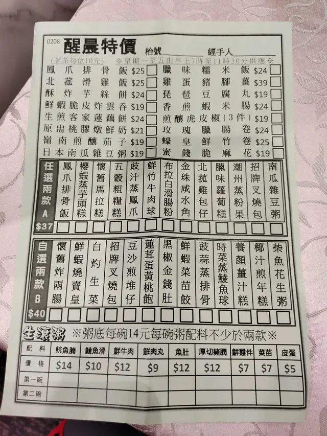 餐牌/外賣紙