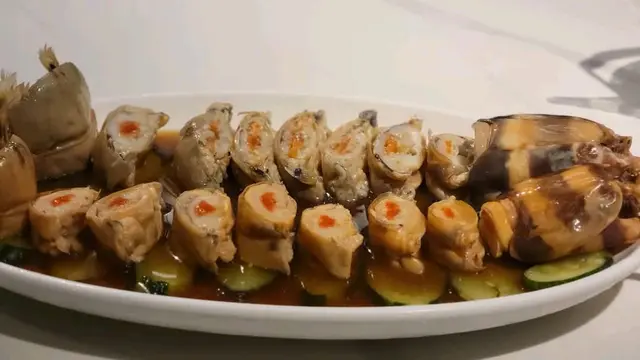 1. 名醬蒸鳳爪:這道點心以其獨特的醬汁和柔軟的口感著稱。鳳爪經過精心蒸製,外皮晶瑩剔透,充分吸收了醬汁的美味,味道鮮香且富有層次感。搭配微辣的醬汁,讓人垂涎欲滴,無法抗拒。2. 月半彎晶瑩鮮蝦餃這款鮮蝦餃以半月形狀呈現,皮薄透亮,內餡由新鮮蝦仁製成,保持了蝦的鮮味和彈性。咬下去的瞬間,鮮美的蝦汁隨之而出,搭配清淡的醬油,讓整體味道更加絕妙。3. 脆炸北海道牛奶:這道甜品以其獨特的口感讓人驚豔。使用北海道的優質牛奶,經過脆炸後外酥內嫩,呈現出金黃色的色澤。每一口都能感受到濃厚的奶香味,讓人不禁想再來一口。4. 鮮蝦腸:鮮蝦腸以其滑順的口感和鮮明的蝦味贏得食客的讚賞。腸粉的皮薄而柔韌,裡面的蝦仁新鮮且鮮甜,搭配特製醬油,讓整道菜品味道更加分明,令人難以忘懷。總體而言,這間點心店的菜品不僅呈現精緻,味道更是值得讚譽,絕對是喜愛中式點心的食客不容錯過的美食天堂!查看更多