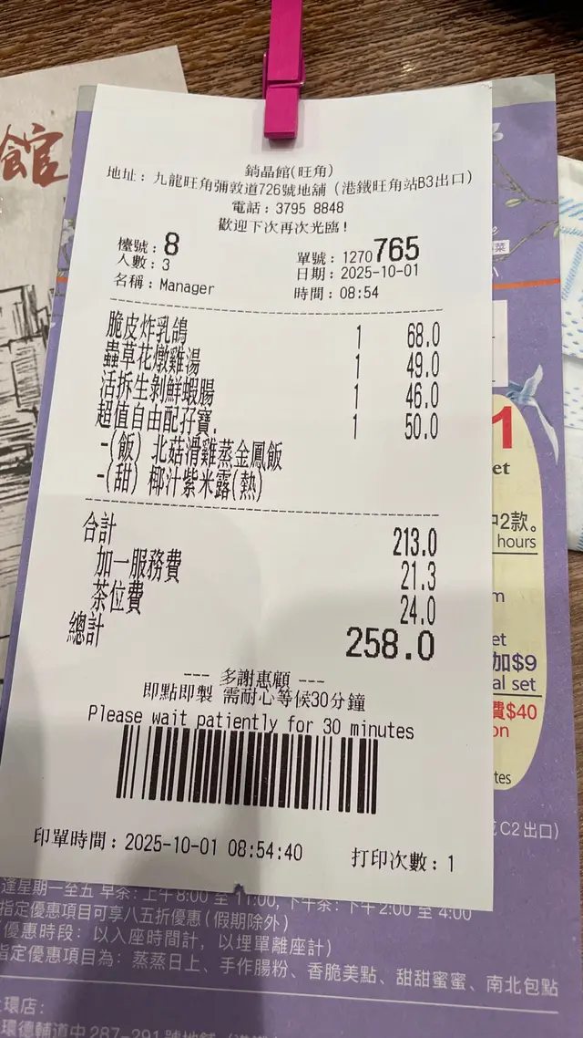 近年飲食業市道艱難,很多餐廳結業,但中小型的點心舖數量卻似乎不跌反升,可能吸納了一些傳統大型酒樓的生意。點心向來是遊客來香港必試的菜式,這間點心店座落在彌敦道地面,交通方便,也可算是遊客店。不過當日所見除了內地遊客外,也有我們在內一些本地人光顧,店員都懂得以純正廣東話對答。我們叫了兩個「住家貞金鳳飯小食自主套餐」,$66一個蒸飯加兩籠點心,非常實惠。