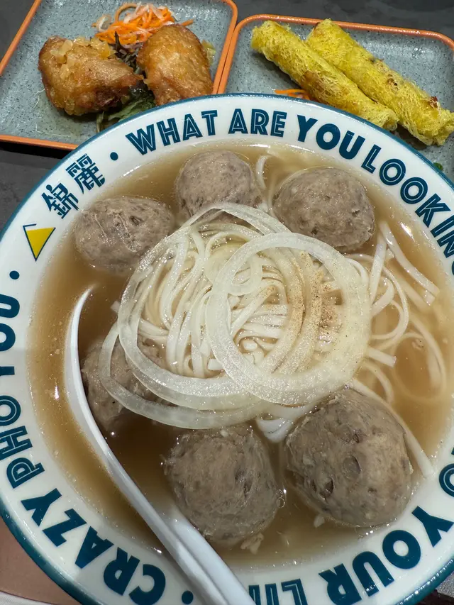 放咗工,又去行下,逛下,去到又一城多嘢行嘛,醒起有間「錦麗」點咗碗胡志明綜合粉,乜都有一兩嚿唔使諗,這碗粉沒有讓我失望,湯量和河粉配料比例配合得幾好,一定是有心機之作。不愧為華爾街日報No1的牛肉粉。先說說河粉吧,滑又有彈性,每一啖同湯嘅融合就算只吃河粉都十分好味。裡面放了幾片牛肉和牛腩,肉質嫩滑,稍微帶點油脂,咬一咬還有點彈牙感,整個感覺像是被溫柔包裹著。湯底清淡但不失風味,魚露的香氣若隱若現,就好似喝了一口淡淡的海洋味,又唔會太鹹。再黎杯話梅青檸蜜,冰冰涼涼的,酸酸甜甜的,像我平時心情一樣。話梅的鹹香偷偷跑出來,配上青檸的清新,喝完整個人都精神咗少少。至於家鄉魚餅,魚肉鮮美,咬一口再點點酸甜醬,再咬一口雖然煎炸嘢都比較肥,食一兩舊嚟講都唔算太過分,覺得很滿足。整體來說,食完呢餐,沒有太多驚喜,但卻讓人心情輕鬆。下次或者我又試試其他,即管睇吓呢間店會唔會藏有什麼秘密等著我去發掘。