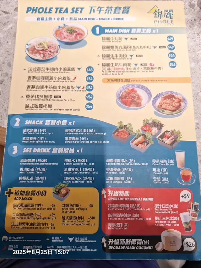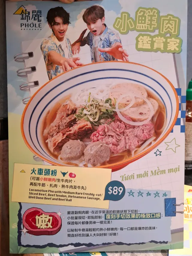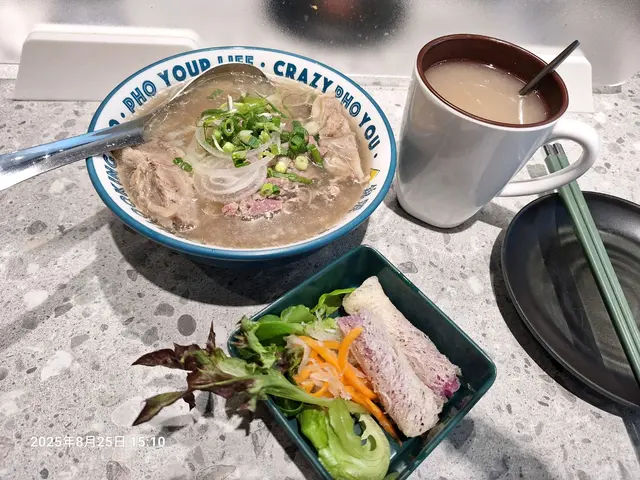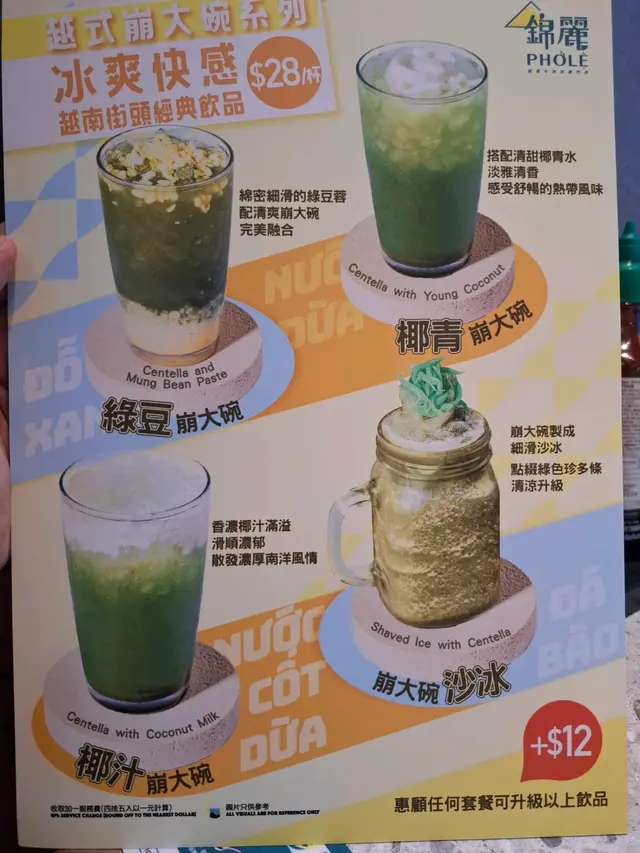 屋企太少人,出街食更方便。想食清啲,湯麵係一個選擇,突然發現呢間分店都開左一段時間,仲未幫襯,所以落去食越南河粉 ,原來越南本店,更加係2023同24年必比登推介 。睇下餐牌先胡志明綜合河粉 $88 可以揀生牛肉或者小鮮嫩肉,因為唔知咩叫小鮮嫩肉,所以揀左,原來係無咩肥嘅牛肉片,另外仲有、熟牛肉同牛丸。湯底好清又夠味,河粉好滑,咩都未落飲一啖,之後再加九層塔、青檸汁同芽菜,感受唔同嘅口味。熟牛肉係牛腩,切到咁大件,應該已經本地化左,不過呢個方法更加吸牛骨湯,味道更足,又唔會太鞋,係一個好改變,但牛丸就唔算太特別啦!絕配油炸鬼(即炸半條)[$8推廣價]炸得好香脆,原來浸牛骨湯,吸曬啲味,半脆半軟,感覺好正,正過配粥。酥炸軟殼蟹 (2隻) $66軟殼蟹好大隻,大到一定要切件,呢個價錢真希好抵。軟殼蟹炸得好酥脆,仲有少少胡椒粉,所以就算無點甜酸汁,都完全唔會酸。牛油果米紙卷 (2件)$40傳統米紙卷包住沙律菜,可能有肉類或者蝦,加啲檬粉,不過呢個裡面完全無澱粉,直接用牛油果加沙律菜,取代檬粉嘅角色,非常creamy ,點埋魚露,清新好多。紫薯春卷(2件) +$26米網包住紫薯,非常鬆化香脆,原來裡面紫薯餡係甜嘅,整體好夾。越式蒜蓉牛油雞翼(2件)+$10呢度嘅牛油雞翼非常鬆化,但粉唔算厚,仲比平時多左蒜蓉香味,更惹味。鹹檸檬青檸梳打 +$10成日都會叫青檸梳打,貪佢夠清新。原來加埋鹹檸,感覺又唔同,少少鹹係會開胃啲,又更加解膩。越式椰子咖啡沙冰 +$22見到個椰子系列好想試,原來佢唔係椰子咖啡,係椰子+咖啡,飲下面嘅部分,係有奶香嘅越南咖啡,比較香甜。咬到沙冰上面嘅椰絲椰糖就即刻夠味啦!夢幻彩虹多士 (配滴滴咖啡雞蛋醬)$42多士本身無味道嘅,需要點醬。多士烘得好脆,蛋漿本身好香甜仲有椰香味,味道本身已經好足夠,底下嘅咖啡少少苦味,純粹用來平衡上面嘅甜,令佢更有層次,好食過茶木 。小計 $312服務費10% $31.2 總計 $343Read More