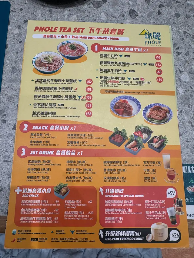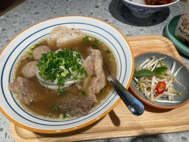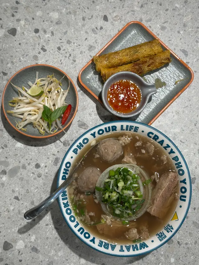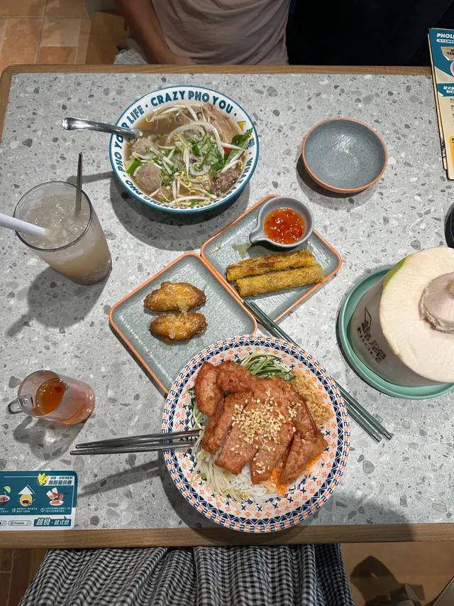 屋企太少人,出街食更方便。想食清啲,湯麵係一個選擇,突然發現呢間分店都開左一段時間,仲未幫襯,所以落去食越南河粉 ,原來越南本店,更加係2023同24年必比登推介 。睇下餐牌先胡志明綜合河粉 $88 可以揀生牛肉或者小鮮嫩肉,因為唔知咩叫小鮮嫩肉,所以揀左,原來係無咩肥嘅牛肉片,另外仲有、熟牛肉同牛丸。湯底好清又夠味,河粉好滑,咩都未落飲一啖,之後再加九層塔、青檸汁同芽菜,感受唔同嘅口味。熟牛肉係牛腩,切到咁大件,應該已經本地化左,不過呢個方法更加吸牛骨湯,味道更足,又唔會太鞋,係一個好改變,但牛丸就唔算太特別啦!絕配油炸鬼(即炸半條)[$8推廣價]炸得好香脆,原來浸牛骨湯,吸曬啲味,半脆半軟,感覺好正,正過配粥。酥炸軟殼蟹 (2隻) $66軟殼蟹好大隻,大到一定要切件,呢個價錢真希好抵。軟殼蟹炸得好酥脆,仲有少少胡椒粉,所以就算無點甜酸汁,都完全唔會酸。牛油果米紙卷 (2件)$40傳統米紙卷包住沙律菜,可能有肉類或者蝦,加啲檬粉,不過呢個裡面完全無澱粉,直接用牛油果加沙律菜,取代檬粉嘅角色,非常creamy ,點埋魚露,清新好多。紫薯春卷(2件) +$26米網包住紫薯,非常鬆化香脆,原來裡面紫薯餡係甜嘅,整體好夾。越式蒜蓉牛油雞翼(2件)+$10呢度嘅牛油雞翼非常鬆化,但粉唔算厚,仲比平時多左蒜蓉香味,更惹味。鹹檸檬青檸梳打 +$10成日都會叫青檸梳打,貪佢夠清新。原來加埋鹹檸,感覺又唔同,少少鹹係會開胃啲,又更加解膩。越式椰子咖啡沙冰 +$22見到個椰子系列好想試,原來佢唔係椰子咖啡,係椰子+咖啡,飲下面嘅部分,係有奶香嘅越南咖啡,比較香甜。咬到沙冰上面嘅椰絲椰糖就即刻夠味啦!夢幻彩虹多士 (配滴滴咖啡雞蛋醬)$42多士本身無味道嘅,需要點醬。多士烘得好脆,蛋漿本身好香甜仲有椰香味,味道本身已經好足夠,底下嘅咖啡少少苦味,純粹用來平衡上面嘅甜,令佢更有層次,好食過茶木 。小計 $312服務費10% $31.2 總計 $343…查看更多