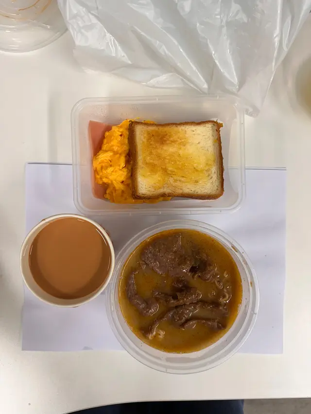 食物出品比較穩定的冰室,已經在這裡光顧了幾次點過唔同類型的菜式,炒粉麵飯,常餐,出品都是符合對港式茶餐廳預期這次叫左常餐外賣,沙嗲牛公仔麵配火腿蛋丹麥包沙牛麵味道幾濃生花味,牛肉唔會太靭,正常水平將平時食開既白麵包轉左丹麥包,甜甜地,又加添左少少西餐味道至於杯港式奶茶都係好飲,夠茶味,奶同茶既比例剛剛好有時候諗唔到食咩,又想食港式野,就會諗起另外一題,這裡的蛋撻都好味!總結而言:推介,抵食港式茶餐廳