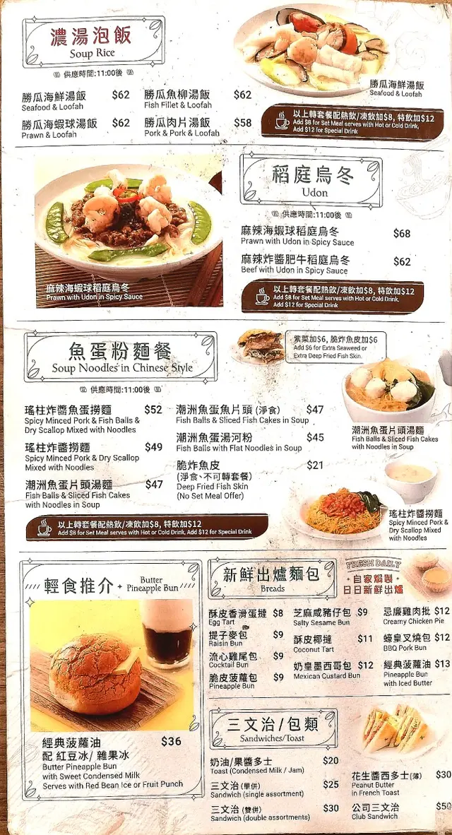 喺銅鑼灣嚟講都算係性價比較高嘅冰室產品味道唔錯重點係夠晒熱同埋地方都闊落 推BB車入去都ok所以都岩一家大小去全日選擇都ok 有常餐 有包 有小菜下次經過都可以係其中一個選擇