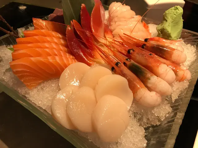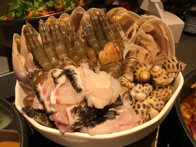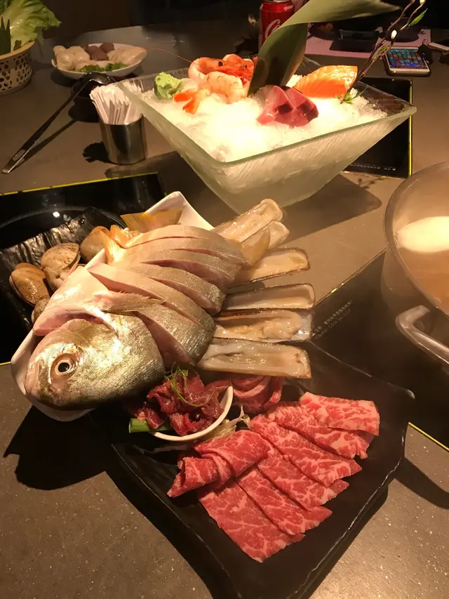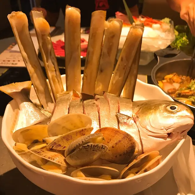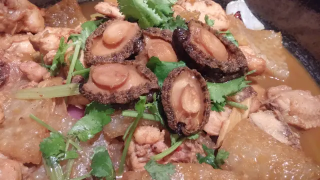仲有每位奉送一隻冰鎮鮑魚牛肉各部分精粹只限一碟雞煲周圍都有, 呢度就有埋鮑魚食, 加埋薑蔥同芫茜 ,陣陣鮑魚雞味出曬嚟.海鮮拼盤夠新鮮有蝦、蟶子、石斑片、鮮尤片、 東風螺,呢度係用啲細隻嘅東風螺,所以特別鮮甜及嫩.成個海鮮缸喺度 ,證明啲食材係新鮮㗎叫左個什雜菜籃,睇下幾多菇類同埋鮮菜, 仲有我至愛嘅粟米.成個刺身柜喺度包保新鮮睇見呢個刺身拼盤係咪口水都流埋啦.