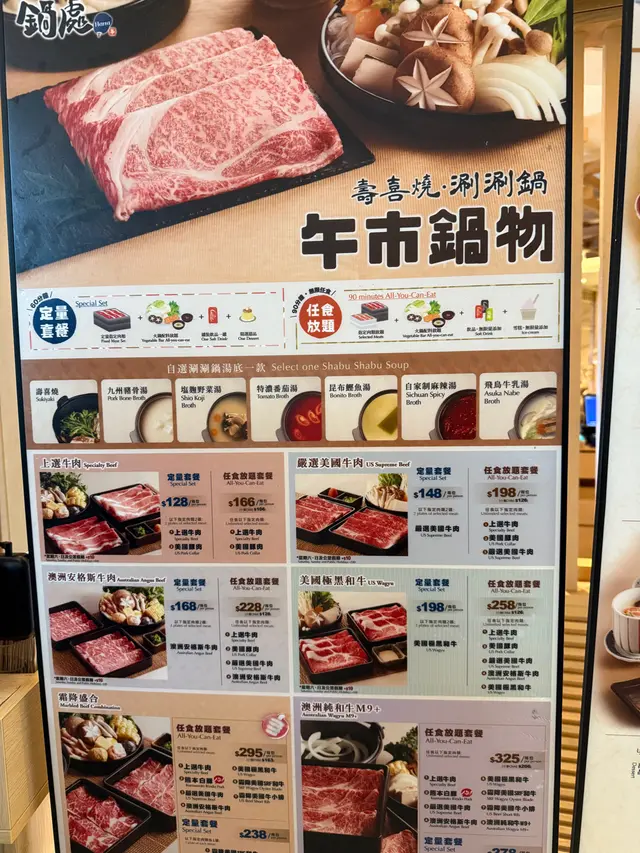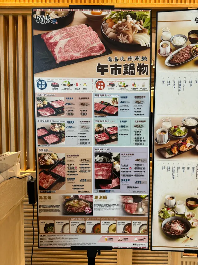 我地兩個各自order澳洲安格斯牛肉special set🐮🍲係每人一鍋~我地分別選:壽喜燒湯底+番茄湯底🍅蕃茄湯底有淡淡的蕃茄味嘅;但壽喜燒真係冇乜壽喜燒嗰種香,有少少辣。.✨澳洲安格斯牛肉🐮呢個牛肉嘅肉質偏硬,同埋可能個煲問題 勁快蒸發曬啲湯,加完湯又要等佢滾,搞到燉煮時間變長⏰.✨豬肉中規中矩啦🐽豬肉相比牛肉 肉質較嫩+口感細膩.✨火鍋配料放題✨選擇好少,淨係講啲比較特別嘅配料:芋絲已經算係較為好食,食落脆口;豆腐:外表獨特 食落就係普通滑豆腐;魚蛋煙煙韌韌,冇咩腥臭味,幾好食;烏冬唔係煙靭嘅讚岐,只係普通香港烏冬,圓圓地一條,唔煙靭;麵就真係好麵粉,唔好食;墨汁花枝丸嘅外表特別而好食,但我食唔出墨汁味。.✨甜品✨牛奶布丁好食!奶味香濃 質地柔軟;芒果布丁好水,質地奇怪,應該就冇落cream嘅布丁;黑糖丸子嘅黑糖味好香,入面應該有吉士醬(?) …查看更多