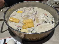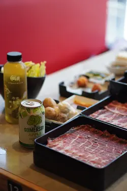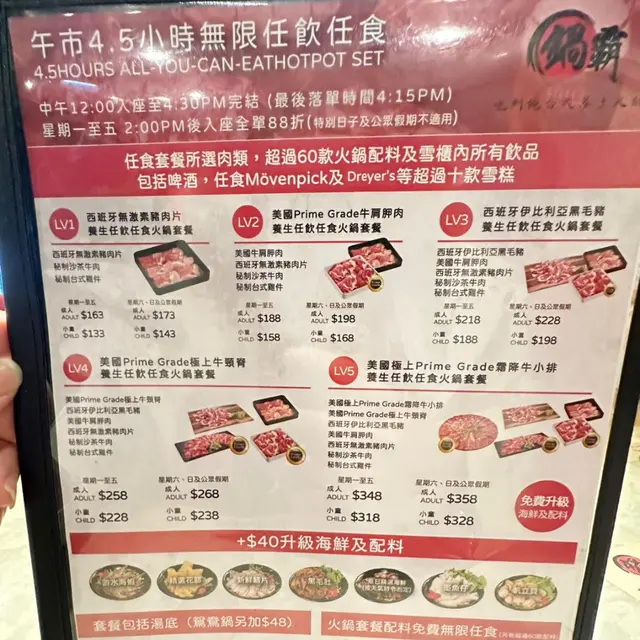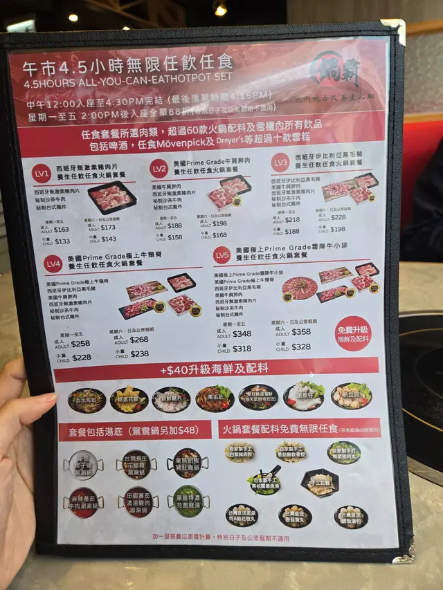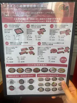 天氣轉涼了,老公提議打邊爐,呢間鍋霸主打台式,我地中午入坐唔係好多人,兩人都係卡位,夠晒闊落,我地就點左Lv2套餐,因為除左豬同牛,呢度仲有好多台式野,用QR code點菜,先落左個湯底,簡左藥膳湯藥柳子雞煲,黎到個湯好香濃,仲有一層香香椰子油。落單點了美國安格斯牛肉,無激素豬肉,仲有好多手工丸,手工三寶丸,墨魚丸黑松露墨魚丸,麻辣牛丸,豬肉丸,墨魚滑,每樣都有試。仲有好多特式野,炸魚皮,黑魚柳,鴨血,手工冬菇豬軟骨水餃等等,每樣都好食。仲有海鮮,沙白,花膠,海蝦,滷水雞腎同豬大腸都係我心水,叫左幾次,佢啲炸野都好出色,炸花枝丸完全係台灣水準,仲可以落唔同調味粉,即叫即炸,掂呀!調料區選擇都好多,冷熱飲區全,凍飲有手工冷泡茶及多款汽水,仲有名牌子雪糕任食,同埋唔同既雪糕雪條。呢間火窩店俾人感覺好台式,特別係啲窩底同手工食材,啲員工收野出餐都好快而且友善,有位男職員好細心,留意到我地想整走啲泡,佢提醒我地係椰油,而且上熟食又會提醒,好照顧客人需要。…查看更多