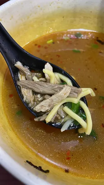 這桌美食,簡直是「牛」氣沖天!🐂先來說說那碗**雲吞牛腩紅薯粉**,這可是豪華版的「滑溜溜」套餐。雲吞皮薄餡多,像是小小的美食抱枕,一口咬下,內餡瞬間在嘴裡爆開,幸福感直接飆升!牛腩則是燉到軟嫩,滿滿的膠質彈牙又入味,搭配紅薯粉,一口滑溜溜,根本停不下來。湯底濃郁香醇,像是熬了幾百年的精華,喝一口,整個人都被牛腩汁擁抱了!再來看看**鴨胸牛腩米粉**,這組合真是「硬核」又溫柔。鴨胸肉質細膩,瘦而不柴,肥而不膩,每一片都像藝術品一樣地擺在碗中,光看就覺得高級!牛腩還是熟悉的那股濃郁,咬下去,肉汁直衝味蕾!至於米粉,這傢伙像是吸收了湯底的靈魂,每一口都超有味,每一條都滑順入喉,完全沒有糾結。最後,別忘了那瓶**豆漿**,這是一切美食的「化解之神」。吃得太濃太重?來一口豆漿,瞬間清爽。吃得太滿太膩?來一口豆漿,讓你的胃瞬間舒展。這瓶豆漿的角色,就像是負責收尾的「壓軸選手」,給整頓飯一個完美的ending!總結一句:這頓飯,牛腩汁是靈魂,麵條是載體,肉類是點睛之筆,豆漿是最後的回味,吃完只想說——還有第二輪嗎?😆