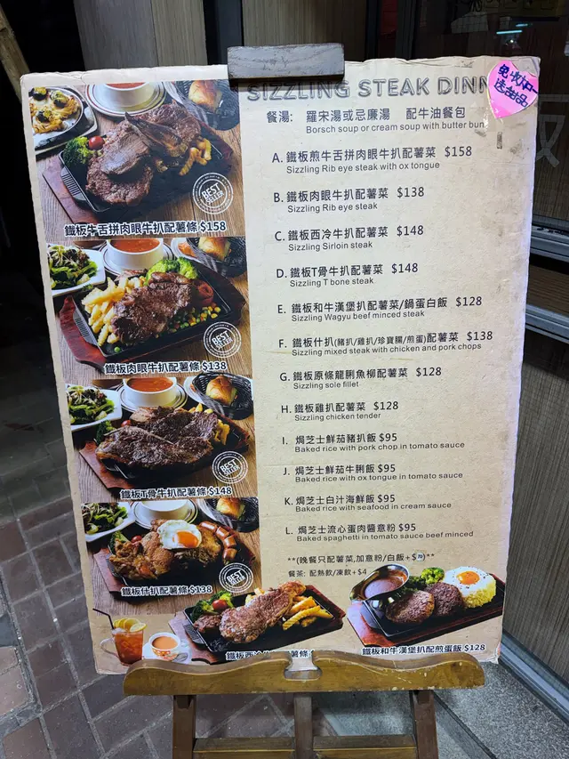 意粉都會有額外嘅汁有黑椒或燒汁兩種黑椒夠香口但唔會好辣,怕辣嘅男朋友都食到~鐵板牛舌拼肉眼 $158好吸引嘅組合,一睇menu就比佢吸引