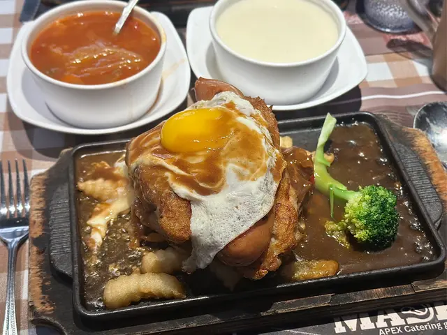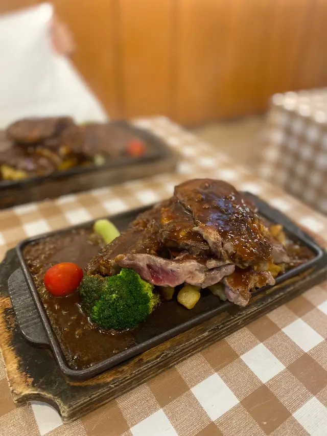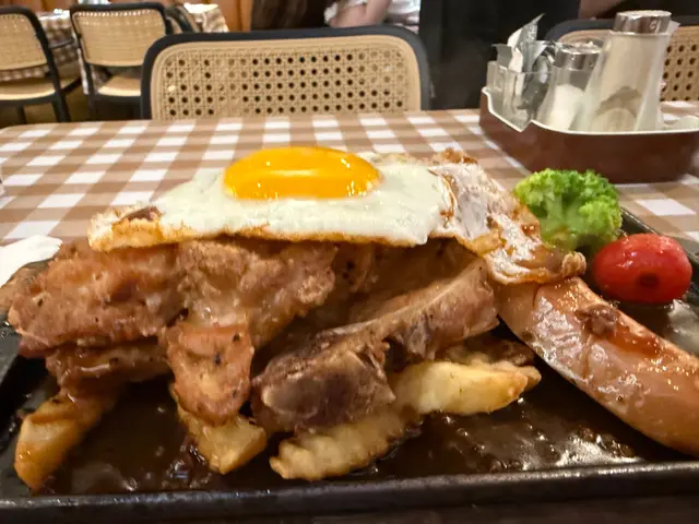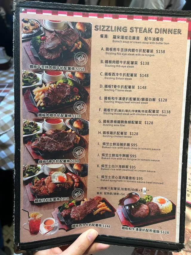 好大份對得住價錢牛扒叫咗7成熟中間粉嫩嘅顏色睇見都流晒口水因為有薯條鋪底所以唔會被鐵板熱到變更熟係真‧七成熟﹗兩樣都好香嘅牛味而且好軟好入口鐵板珍寶什扒 $138有豬扒、雞扒、珍寶腸、煎蛋勁豐富嘅配搭MVP居然係煎蛋﹗流心蛋黃而燶邊好出色最後仲有啫喱叔叔會抱住一大盤啫喱同花奶出嚟問你要唔要花奶花奶超厚一層,勁開心係雜果啫喱~仲跟餐飲,凍飲加$4茶走同凍華田…查看更多