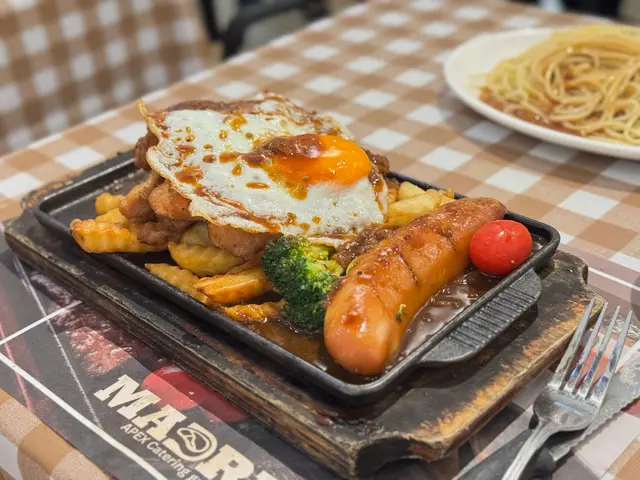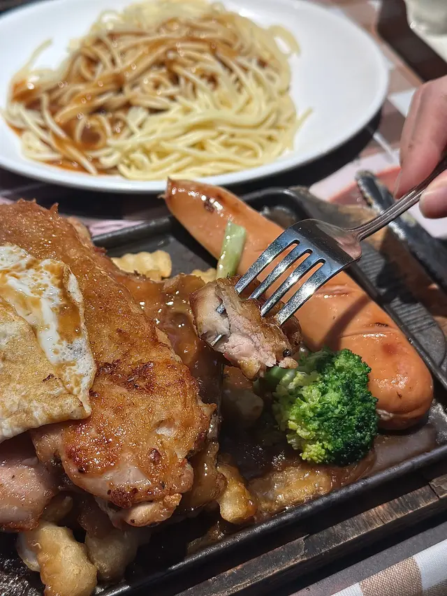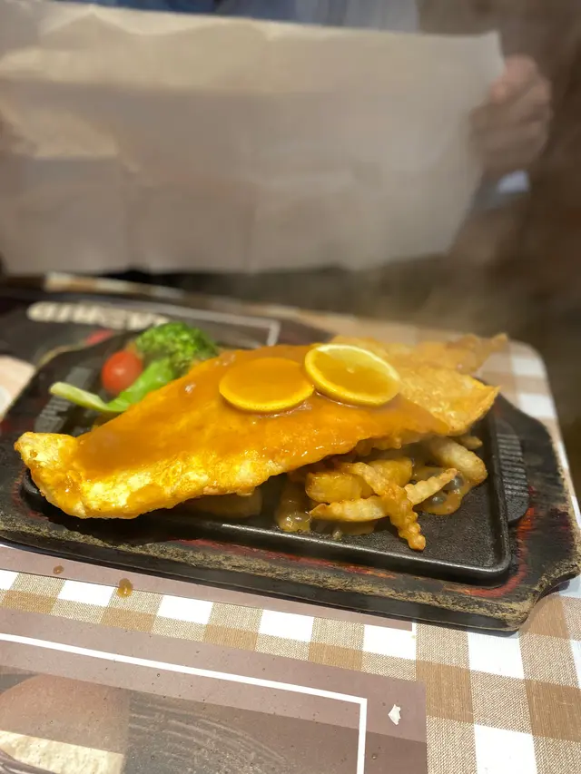 因為夠粗身所以索晒啲汁都唔會淋鐵板果面好焦香脆口但仲中間係軟身,勁正本來以為轉意粉或者飯加$10,原來係額外加碟上,勁足量嘅份量鐵板上枱之後職員叫你拎起紙巾再淋汁令人開心嘅咋咋聲同埋香氣一齊湧上