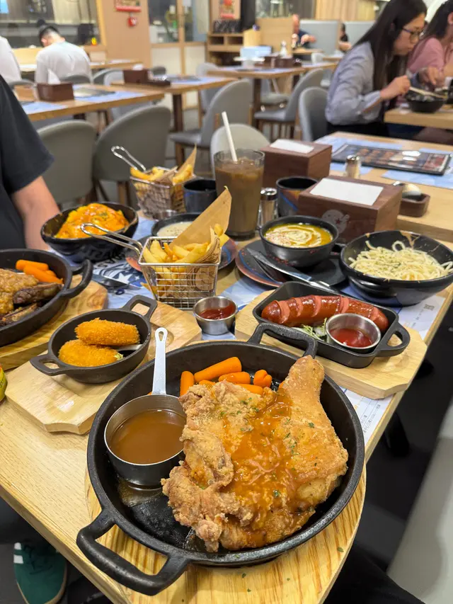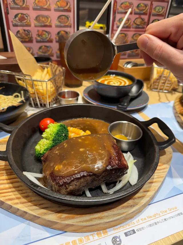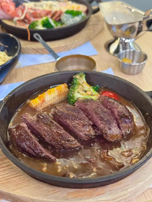沙田的「鐵板大師」最近更新了主餐牌,推出話題新品「鐵板巨人三重奏」,再加上香煎安格斯牛板腱扒等招牌鐵板菜式,讓人食慾全開。好窩心嘅係晚市主餐可任意加飯或意粉,更吸引的是這裡居然沒有加一,性價比極高! 餐廳環境乾淨明亮,鐵板香氣瀰漫空氣中,坐下即聽到「滋滋」聲起,視覺與嗅覺同時被喚醒。