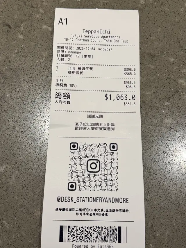 鐵板.壹 (尖沙咀) 網上訂座即賺Rice Dollars 網址: https://s.openrice.com/QrbS0qM0B00 地址: 香港尖沙咀漆咸圍10-12號1樓A號舖 電話: +852 92530094