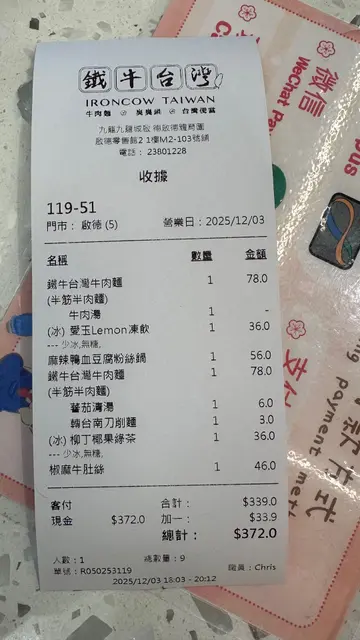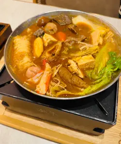 呢日喺啟德食lunch,見到呢間台灣菜門面好明亮,就入咗去食返餐 。餐廳午市時段有提供便當、麵食同小火鍋🔥總鋪師私房牛肉麵見到都幾多食客嗌呢個人氣之選,有幾款湯底可以選擇,我揀咗牛肉湯,入面嘅配料有金錢腱、牛肋條、牛筋、牛肚絲同紅蘿蔔🥕 勁鍾意佢個牛肋條,炆得入味又勁軟腍🐮 台灣本味麻辣鴨血鍋鴨血係其中一樣,我好鍾意食嘅台灣食物,所以呢個小火鍋,我揀咗鴨血鍋🙈 配安格斯牛肉片同埋新竹米粉🍜 除咗鴨血之外,小火鍋都有好多配料,包括芋頭貢丸、米血糕、蜂巢豆腐、蟹柳、魚皮餃、魚腐、響鈴、娃娃菜、番茄、金針菇、粉絲、生菜、冬菇同埋白蘿蔔,勁豐富🥰小食♦️鹽酥雞拼夜市小香腸食台式小食必食呢兩款,有少少似去咗夜市掃街😙 呢度嘅鹽酥雞做得幾出色,炸粉夠晒薄,而且入面嘅雞仲keep住有肉汁。♦️綜合滷味拼盤呢度有齊佢最signature嘅滷味,有滷豬大腸、滷豬耳同埋滷蛋,款款都滷得好入味😎飲品♦️鴨屎香狂打檸檬茶雖然呢個冇得揀選甜度,但係飲落口甜度適中,仲幾Fresh添㗎🍋♦️大甲椰椰芋香呢個飲品嘅包裝好特別,呈粉紫色,主要係椰香味較重啲。呢個lunch都真係幾豐盛,食咗好多台灣風味嘅菜式,平日午市時段都近乎坐滿㗎😌…查看更多