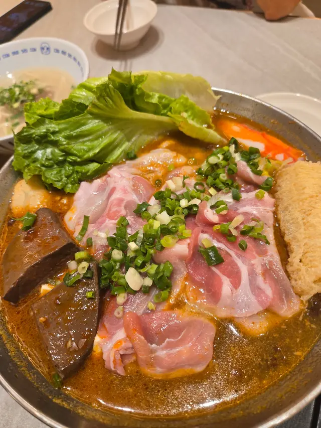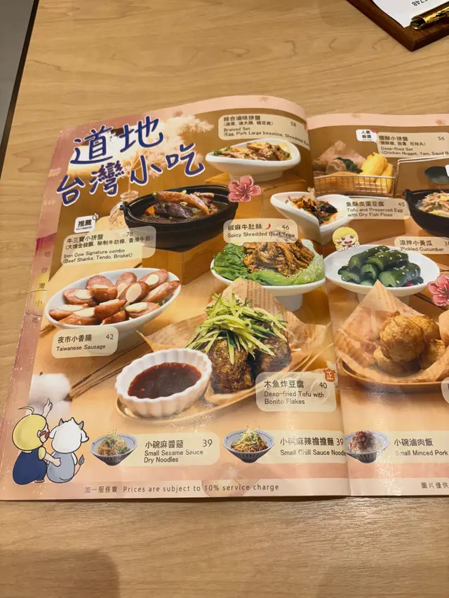 呢日喺啟德食lunch,見到呢間台灣菜門面好明亮,就入咗去食返餐 。餐廳午市時段有提供便當、麵食同小火鍋🔥總鋪師私房牛肉麵見到都幾多食客嗌呢個人氣之選,有幾款湯底可以選擇,我揀咗牛肉湯,入面嘅配料有金錢腱、牛肋條、牛筋、牛肚絲同紅蘿蔔🥕 勁鍾意佢個牛肋條,炆得入味又勁軟腍🐮 台灣本味麻辣鴨血鍋鴨血係其中一樣,我好鍾意食嘅台灣食物,所以呢個小火鍋,我揀咗鴨血鍋🙈 配安格斯牛肉片同埋新竹米粉🍜 除咗鴨血之外,小火鍋都有好多配料,包括芋頭貢丸、米血糕、蜂巢豆腐、蟹柳、魚皮餃、魚腐、響鈴、娃娃菜、番茄、金針菇、粉絲、生菜、冬菇同埋白蘿蔔,勁豐富🥰小食♦️鹽酥雞拼夜市小香腸食台式小食必食呢兩款,有少少似去咗夜市掃街😙 呢度嘅鹽酥雞做得幾出色,炸粉夠晒薄,而且入面嘅雞仲keep住有肉汁。♦️綜合滷味拼盤呢度有齊佢最signature嘅滷味,有滷豬大腸、滷豬耳同埋滷蛋,款款都滷得好入味😎飲品♦️鴨屎香狂打檸檬茶雖然呢個冇得揀選甜度,但係飲落口甜度適中,仲幾Fresh添㗎🍋♦️大甲椰椰芋香呢個飲品嘅包裝好特別,呈粉紫色,主要係椰香味較重啲。呢個lunch都真係幾豐盛,食咗好多台灣風味嘅菜式,平日午市時段都近乎坐滿㗎😌…查看更多