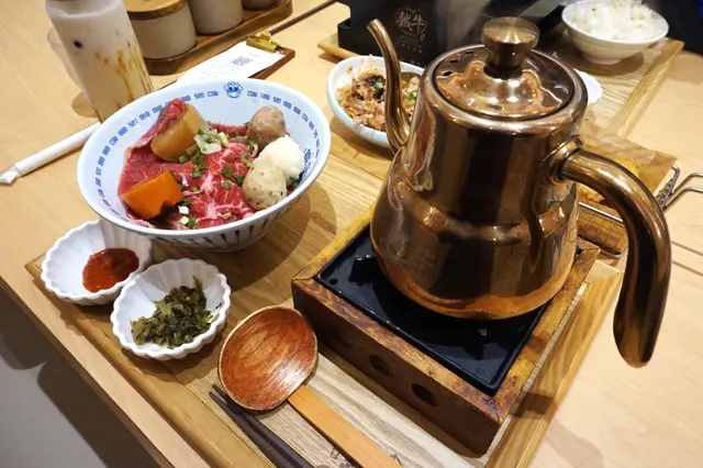 本來就只喺打算食番招牌嘅「總舖師私房牛肉麵」,不過,見到呢一款鐵牛手沖涮涮牛肉麵,好有賣點,亦喺店家推薦,無理由唔試架。自己將熱湯倒入碗內將安格斯牛肩肉灼熟,湯頭濃香而不濁,非常好飲,牛肩肉色澤鮮亮,生熟度由自己控制,入口嫩滑到不得了,且甚富肉味,又有油脂香,更有非常多片;此外,配料仲有滷蘿蔔、花枝丸、香菇貢丸、芋頭貢丸,實在豐富,而麵條份量亦多,果然有質素,抵食。