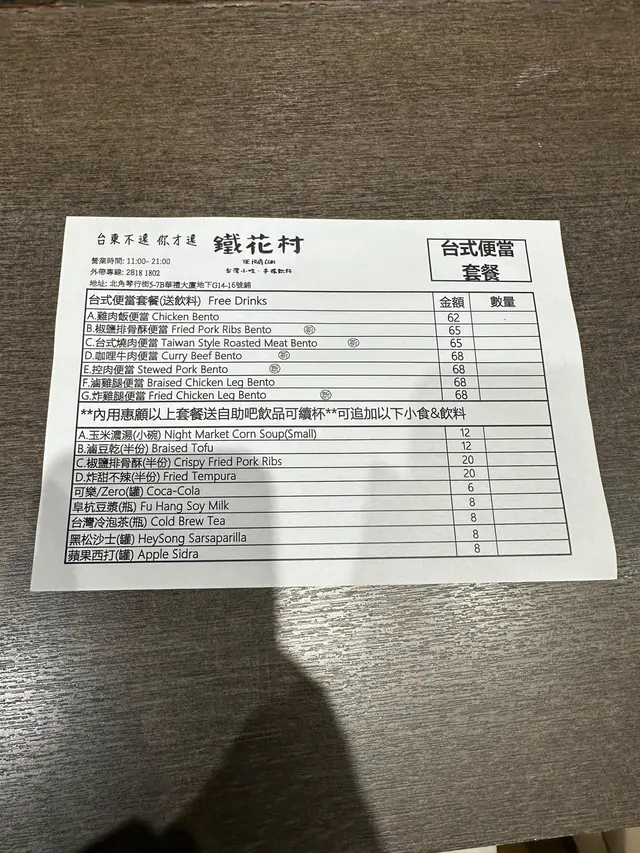 鐵花村 (華禮大廈) (北角) 網址: https://s.openrice.com/QrbS0J30F00 地址: 香港北角琴行街5-7號華禮大廈地下14-16號舖 電話: +852 28181802