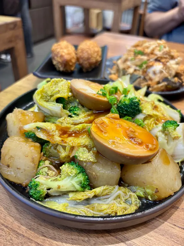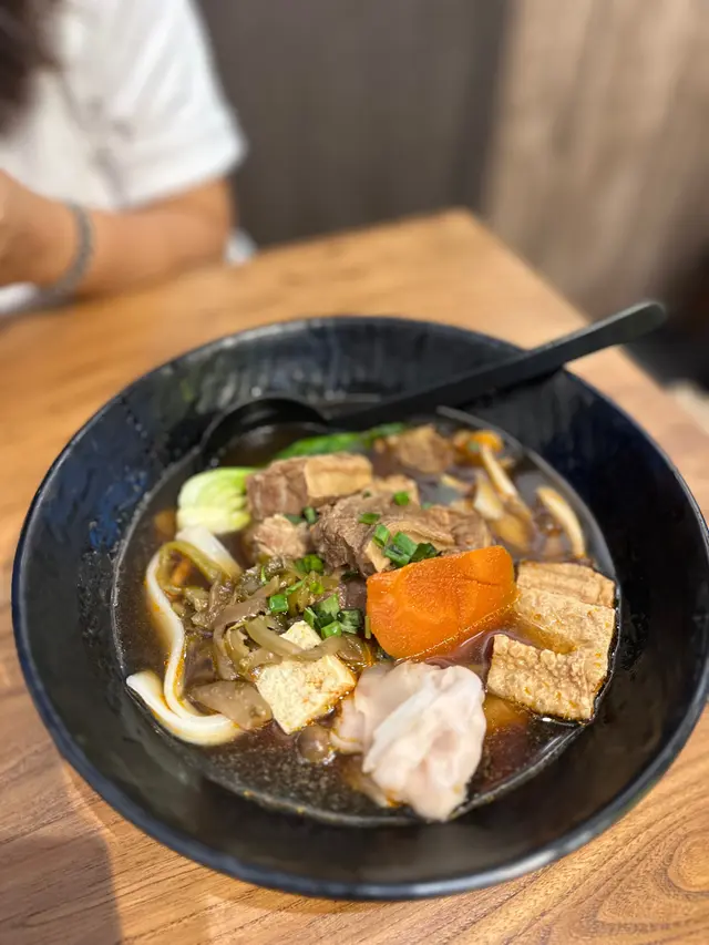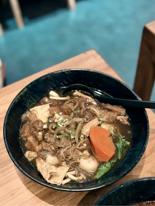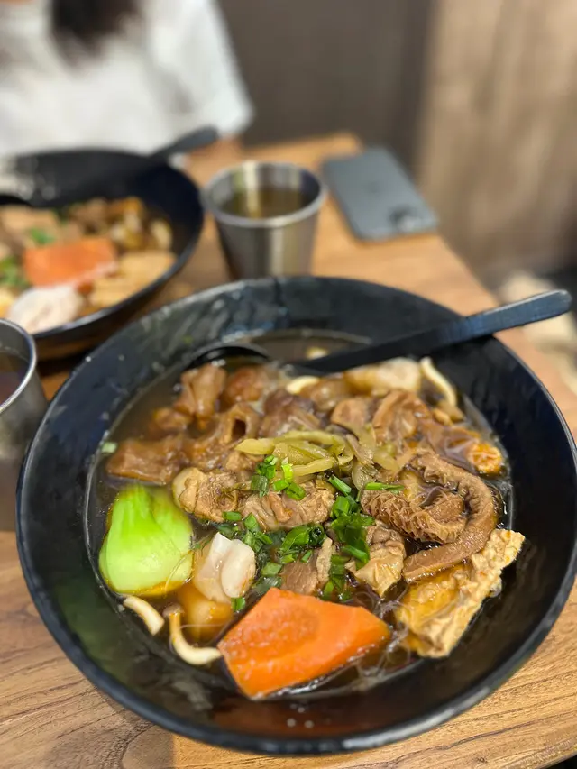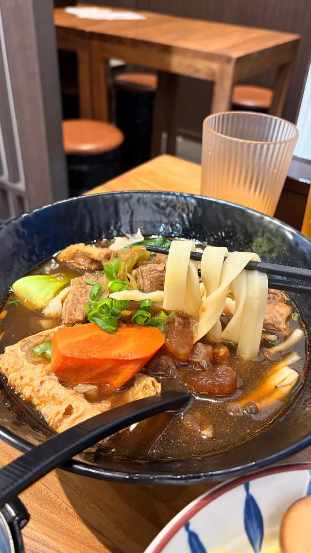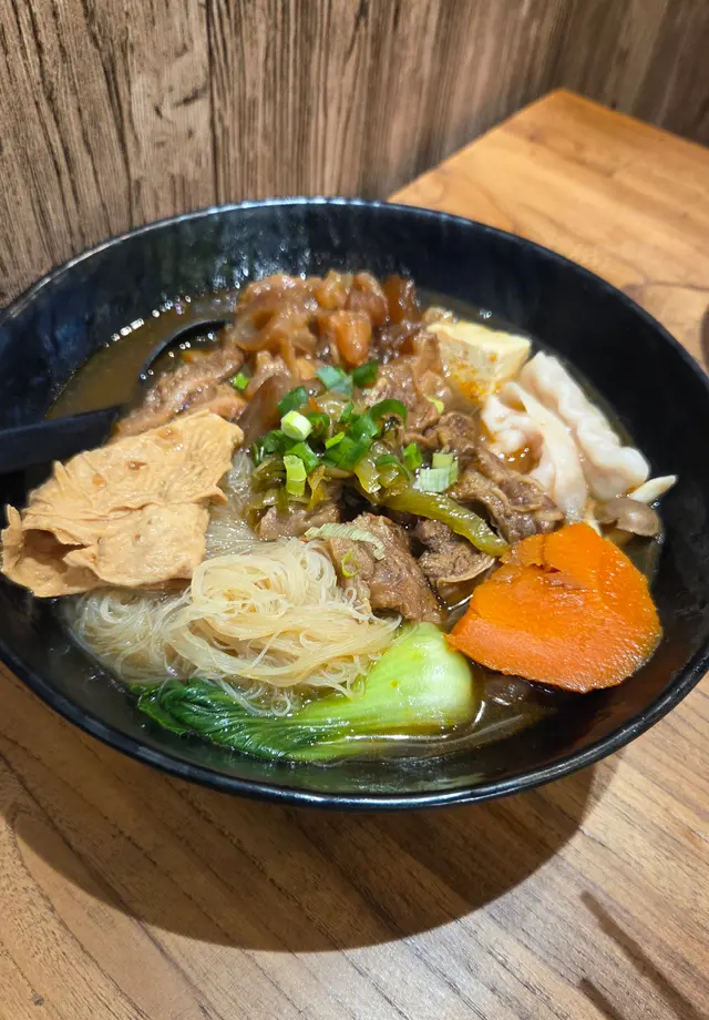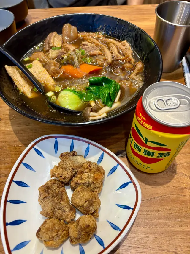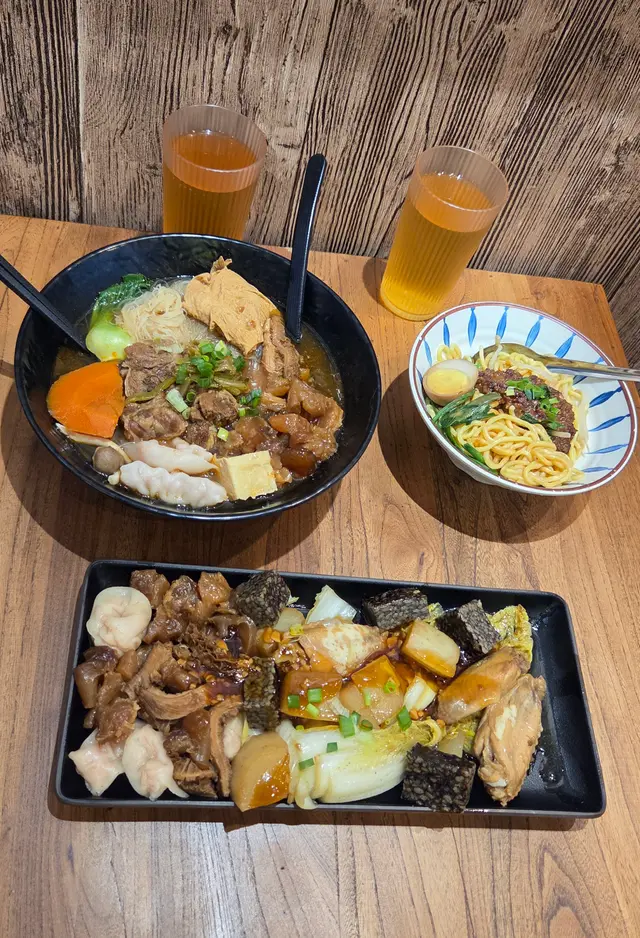 朋友住北角,上次佢帶我食完鐵花村嘅滷肉飯一直念念不忘,知道佢地開咗新店,今次專登嚟食佢哋嘅麵食!今次點咗個「全牛宴」,果然無令我失望!最驚喜係,原來所有主食跟餐都會送一杯台灣茶! 即刻覺得性價比高咗好多🤣 今次嚟先知原來店主係台灣人,唔怪得咁有台灣風味牛肉刀削麵🍜個湯底一飲就知係落足心機熬,濃郁得嚟帶有淡淡紅燒香,絕對唔係味精湯。刀削麵口感超級正!煙韌有嚼勁,掛滿湯汁,每一啖都係享受。牛肉份量足,炆得軟淋入味,正!牛三寶新竹米粉🍜朋友叫呢個,我偷食咗幾啖,牛三寶(牛腩、牛筋、牛肚)處理得非常好,乾淨又入味。特別係牛筋,膠質豐富,黏口得嚟又唔會太膩。新竹米粉幼滑,吸收晒精華湯底,係另一個驚喜!台東小菜嘅家常風味 🥬娃娃菜同西蘭花叫咗兩份蔬菜,簡單用滷水汁同蒜蓉焯熟,清甜爽口,正好平衡一下肉類嘅濃味。滷雞翼(三隻)必點小食!滷水汁香甜入味,滷到雞翼骨都入味,肉質嫩滑,係台灣夜市嘅味道!跟餐台灣茶✨ 食濃味嘅台灣菜,最正就係有杯清茶解膩。餐廳跟餐送嘅唔係普通熱茶,係一杯香醇嘅凍台灣茶,茶味甘香,正好可以清清味蕾,繼續作戰!呢個細心位,真係好有台灣餐廳嘅風範。…查看更多