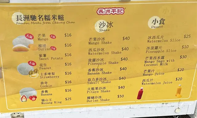 長洲平記😘😘😘長洲人氣小食長洲雲集了各式各樣特色美食、以長洲芒果糯米糍最著名!週末來到長洲遊玩、一落船、沿岸轉左向前行三分鐘、遠處見到一條人龍、懐舊士多店、每日新鮮製作!除左芒果糯米糍、挑選咗幾款人氣、創意、味道幾夾嘅糯米糍😁😁✨芒果糯米糍煙韌軟糯綿綿薄皮、包卷甜蜜蜜、手掌大芒果肉、咬一口、爆汁口腔、超正👍🏻✨貓山王榴槤糯米糍榴槤關注組、必食之選、榴槤清香樸鼻、入口溶化口腔、齒頰留香🤩✨花生糯米糍軟綿綿糯米皮色裹香口花生碎、包滿脹卜卜、味道超濃香口😍✨士多啤梨糯米糍香港版大福菓子、不同之處、以皮薄更優勝、原粒果肉、清甜美味😋✨紫薯糯米糍细腻清香不粘牙,軟糯香、咬下去啖啖紫薯蓉,綿密香甜😛✨曲奇糯米糍香脆oreo曲奇、壓碎粒混和cream、軟軟糯糯的質感、口感鬆軟無比😆✨香蕉糯米糍創意味道、健康之選🤣長洲平記長洲北社海傍路19A號地舖