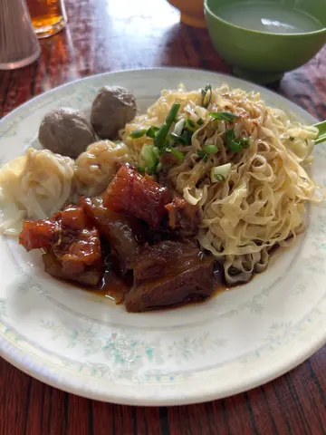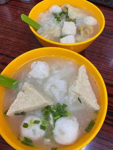 原本衝著老字號來吃,以為會很好,結果非常失望。一到那裡就發現沒有河粉也算了,想試試他們的生麵,結果變成了黏乎乎的鹼水麵,感覺像漿糊。店員還問我們是不是不習慣鹼水麵,叫我們加點醋,但加了之後也沒什麼幫助。而且哪裡有這麼黏的鹼水麵,難道是長洲獨有的嗎?招牌的魚蛋、牛丸、雲吞和牛肚全都不好吃,尤其是魚蛋,一點都不彈牙,沒有魚味,還自稱是招牌。一般市區的面舖都比他們做得好。雖然價格不便宜,我本來有心理準備,但沒想到質素會這麼差。炸魚皮又油又膩,讓人失望。早知道不如去對面的海龍王大排檔吃得更好。