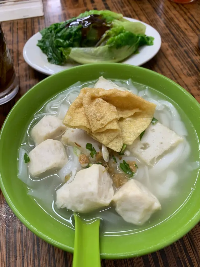 原本衝著老字號來吃,以為會很好,結果非常失望。一到那裡就發現沒有河粉也算了,想試試他們的生麵,結果變成了黏乎乎的鹼水麵,感覺像漿糊。店員還問我們是不是不習慣鹼水麵,叫我們加點醋,但加了之後也沒什麼幫助。而且哪裡有這麼黏的鹼水麵,難道是長洲獨有的嗎?招牌的魚蛋、牛丸、雲吞和牛肚全都不好吃,尤其是魚蛋,一點都不彈牙,沒有魚味,還自稱是招牌。一般市區的面舖都比他們做得好。雖然價格不便宜,我本來有心理準備,但沒想到質素會這麼差。炸魚皮又油又膩,讓人失望。早知道不如去對面的海龍王大排檔吃得更好。