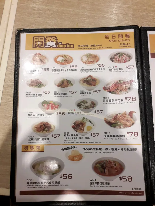 開餐酸菜魚片湯河壽喜燒牛肉飯酸辣無骨鳳爪價錢💲: $57/ $56/ $26好味程度😋: 3.3/5服務🍴: 3.3/5環境🗾: 3.3/5性價比🥢: 4.4/5回頭率😚: 3/5-開餐都算係出名💛之一,平民茶記咁,入面有好多飯/麵的選擇,絕對係可以一個人入去食又唔係食茶記咁頹的個類!一路想來試下碗平價酸菜魚河,終於有機會!😝-🆗-✅酸菜魚片湯河。湯底同平時酸菜魚的湯底顏色有啲唔同,偏綠小小。味道上係偏酸,因為有大量的酸菜,辣味唔太勁,因為主要來自於個幾隻🌶️🤪 鍾意酸湯的我覺得呢個都還可以,又唔會好油☺️ 魚片就絕對唔係個d咩桂花魚,而係普通的魚片咁,所以會有啲骨,都係比較碎,唔係完片,同埋有啲腥🥺 河粉其實好滑,但太碎,完全夾唔起😮‍💨-🆗壽喜燒牛肉飯。飯底比較乾,冇咩汁🥲上面就係一啲用甜豉油炒香左的牛肉🤔 牛肉份量幾多都唔太韌既,味道會有啲鹹,要加埋飯一齊食。佢仲會比幾條秋葵同埋啲菜你,感覺上健康D😂-✅酸辣無骨鳳爪。加$26有呢兜都ok既,因為佢配菜唔多,鳳爪都幾多隻😗味道就係好正常的泰式鳳爪。-整體好好好一般,一個人唔知食咩,經過都可以支持下😌 突登去就唔使啦!酸菜魚河有啲迭比阿🤭查看更多