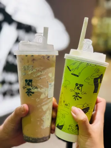 原本想去七仔買野飲,但經過見到閑茶個裝修幾啱快閃打卡,就改咗去買手搖飲品😂好少有手搖店係有枱凳可以坐低打卡嘅,環境比較深色有型格。我揀咗杯珍珠四季春奶茶,朋友揀葡萄柚椰果多多,因為天氣太熱,朋友仲揀多個粉色梅梅新地杯食。四季春呢隻茶其實好香好好飲,見好多fd都無乜試過四季春覺得有d可惜,而四季春配搭珍珠同奶,係好清雅嘅茶味唔會俾奶味搶過哂,好正。梅梅新地杯好多梅粉,雪糕睇落好靚,好啱打卡。葡萄柚椰果多多,朋友話唔會好甜,啱哂減緊肥戒甜嘅佢。因為係拎去睇戲飲,我地拎咗個外賣袋裝野飲,佢地嘅外賣袋唔係d核突膠袋,係可以保溫嘅錫紙袋,都幾有心思。可惜趕住入場無試佢地個炸三治,朋友話呢排炸三文治好似幾hit,唯有下次再買嚟試下啦。…查看更多