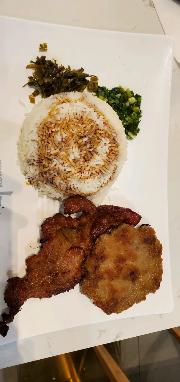 咸魚煎肉餅拼豬扒飯 就係失敗之作!先講咸魚煎肉餅,食入口已經知道係翻煎再翻煎!d肉係乾,完全冇汁,咸魚味道完全食唔出