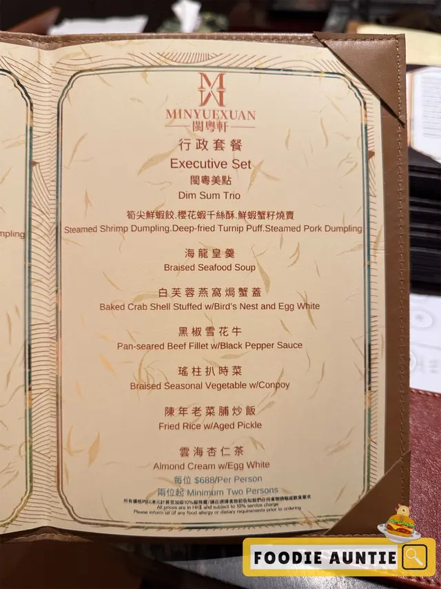早前到訪了位於市中心的中菜館「閩粵軒」,嘗試了他們的 $1188 套餐,菜單內容包括:魚子醬百塔配帕瑪火腿、襌衣帶子王、燕窩海皇羹、清蒸馬來西亞黑貴妃、香煎日本 A5 雪花和牛、黑蒜炒西蘭花苔、鍋燒松露海味炒飯,以及楊枝甘露作甜品。單從菜名看,期待值頗高;但整體體驗過後,只能說表現中規中矩,稱不上令人印象深刻。🍽️ 食物評價:* 魚子醬百塔 略帶腥味,火腿質素尚可,但味道未見層次。* 帶子王與海皇羹 味道屬正常發揮,無明顯亮點。* 黑貴妃魚 實為淡水魚,蒸得恰當,肉質尚算嫩滑,但魚味較淡,並無特別矜貴之感。整體感覺更像是一碟擺盤精緻、火候得宜的蒸鯇魚,與菜名所營造的高級感稍有落差。* A5 和牛 味道與口感皆一般,與期望中的「入口即化」有一定落差。值得一提的是,服務員在介紹時誤稱其為「5A 和牛」,略有失禮。* 松露海味炒飯 炒得乾身分明,但香氣及口感層次不足。* 楊枝甘露 味道清新,但亦屬常見甜品水準,無太大驚喜。💬 用餐環境與服務:* 員工之間在場內交談聲浪偏高,影響了用餐氛圍。* 服務整體中性,未見細緻或貼心之處。* 對菜式的介紹較為簡略,欠缺高級中菜應有的專業度。🔚 整體而言,此套餐的定價與餐飲表現只能說「剛好匹配」,尚未達至物超所值的程度。短期內暫不會考慮再次光顧。…查看更多