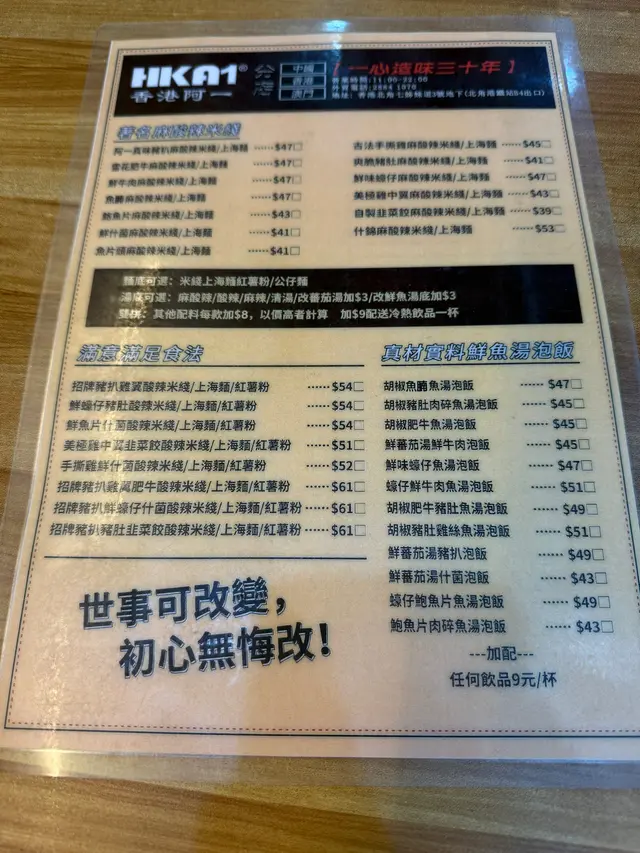 阿一豬扒酸辣米綫 (北角) 網址: https://s.openrice.com/QrbS017u000 地址: 香港北角七姊妹道3號地舖 電話: +852 28841070