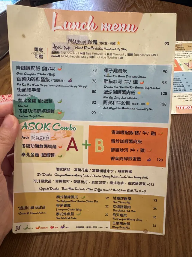 呢晚同朋友一齊喺太古城,嚟咗呢間泰國🇹🇭餐廳食晚餐🤣店員哥哥介紹我哋食呢個 $108 ASOK SIX COMBO,包括咗好多食物:青木瓜沙律 Pataya Salad ส้มต่ำ (Som Tam)炭燒豬頸肉飯 Charcoal Grilled Pork Neck Rice ข้าวหมูคอเกรียม (Khao Moo Kor Kriam)蛋炒咖喱蟹肉飯 Crab Meat Fried Rice with Curry and Egg ข้าวผัดปูไข่เค็ม (Khao Pad Poo Khai Kem)豬肉船麵(牛骨湯底)Pork Boat Noodles (Beef Bone Broth) ก๋วยเตี๋ยวเรือหมู (Kuay Tiew Ruea Moo)冬陰功蝦媽媽麵 Tom Yum Shrimp Mama Noodles มาม่าต้มยำกุ้ง (Mama Tom Yum Goong)芒果糯米飯 Mango Sticky Rice ข้าวเหนียวมะม่วง (Khao Niew Mamuang)有沙律有麵有飯有甜品,分別放喺6個細碗裏邊,每一樣食物大約都係2至3啖可以食晒,全部都幾好味,全部食晒都幾飽,咁嘅價錢真係非常抵食🤣ASOK SIX COMBO 加 $38「飛天通菜」:通菜新鮮,飛天炒即係泰式炒,辣辣哋好惹味🤣ASOK SIX COMBO 加 $18「泰式綠奶茶」:凍冰冰,夠晒甜,飲得人好開心🤣$78「蒜蓉椰菜苗」:椰菜苗新鮮爽脆,簡單用蒜蓉炒已經好食🤣$78「炭燒豬頸肉」:豬頸肉一般脂肪含量都勁充足,呢個都唔例外,所以可以燒得好甘香,呢個亦都係🤣,仲有一碟秘製醬汁可以要嚟沾豬頸肉食🤣$92「生炸蝦餅」:外邊炸到脆脆哋,裏邊爽滑好蝦味🦐🍤…查看更多