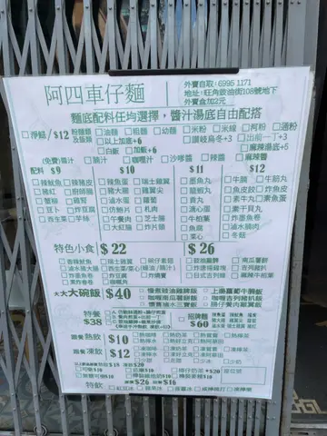 到旺角繁華的市區,心血來潮諗到想食「麵」或「烏冬」。一開始諗到的都是傳統的粥麵店,或者普通車仔麵。一踏入「阿四車仔麵」,整體和整潔,令人覺得舒適。