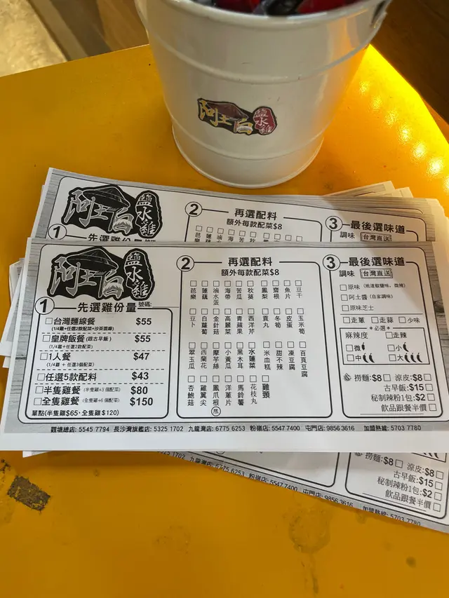 唔使吸收澱粉質之選 yingying929等級22024-08-061K 瀏覽 關注 中午12:30嚟到,都幾多人排隊,等咗一陣先order到,啱啱新出台灣麵線套餐+1/4 隻雞再加兩個餸,再加碗麵線套餐。(仲有幾種鹽水雞口味俾你揀)一個人嘅份量啱啱好👍🏻鹽水雞我嗌咗中辣,都夠辣,雖然係雞胸肉,但都唔係柴肉唔錯,可以再叫👍🏻麵線就一般,好似用蝦子麵嘅一碗麵多過似台式麵線,可以唔使試😅…查看更多以上食評乃用戶個人意見 , 並不代表OpenRice之觀點。1分享唔使吸收澱粉質之選 阿土伯鹽水雞 (長沙灣廣場) https://s.openrice.com/QrbT06OjL00檢舉 張貼 評分4味道4環境3服務4衛生3抵食用餐途徑堂食