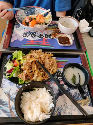 太子荔枝角道附近一直都系美食天地。有金鳳扒房,珠江酒家炒餸,美味餃子等等。今日再次路過,以上店鋪都聚滿人,打算清淡啲就試一試今次便當定食。定食大份,最出色是魚湯!它不是普通定食店好難入口噶沖水麵增湯,而真系魚湯。午餐定食價錢都不貴。魚生飯,魚生新鮮製作,份量好大。羊架小食。本身有味道,日式燒方式風味。少少失望以為有薄荷醬兩個人每一份定食都足夠。位置就在類雷生春斜對面,珠江酒家附近。平時已經系著校服學生居多黎幫襯。今次試一試的確可以平日黎用餐,最緊要。果碗魚湯加分。